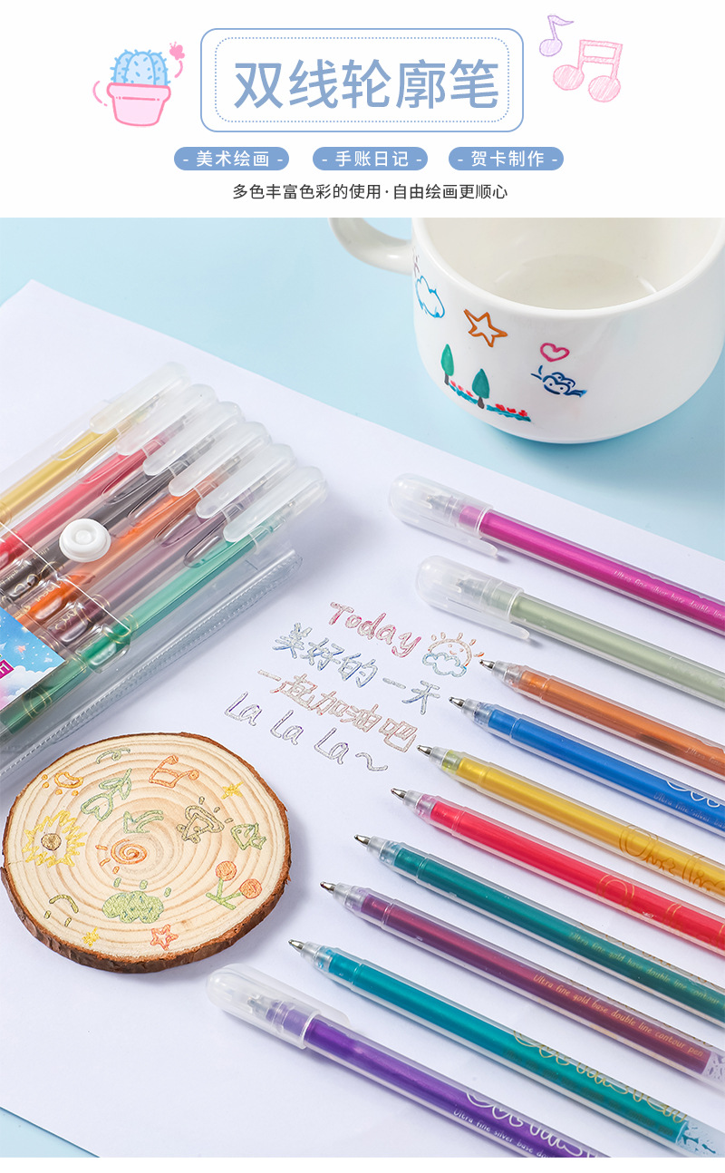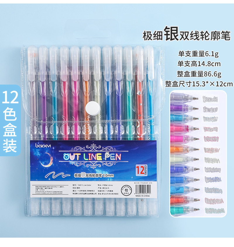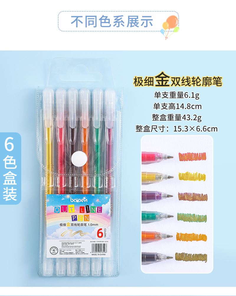 | Pen tip color | Ultra-fine Gold Double-line Outline Pen - 6-color box set |