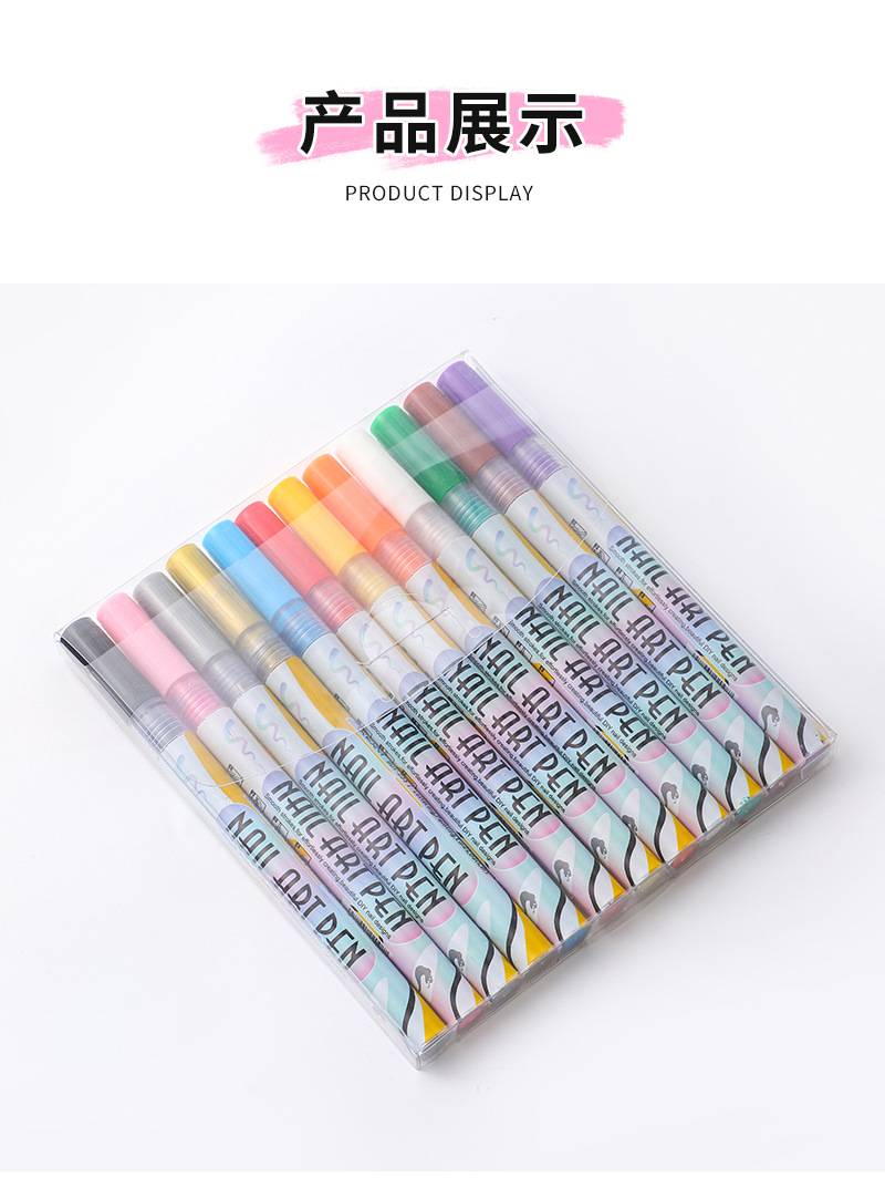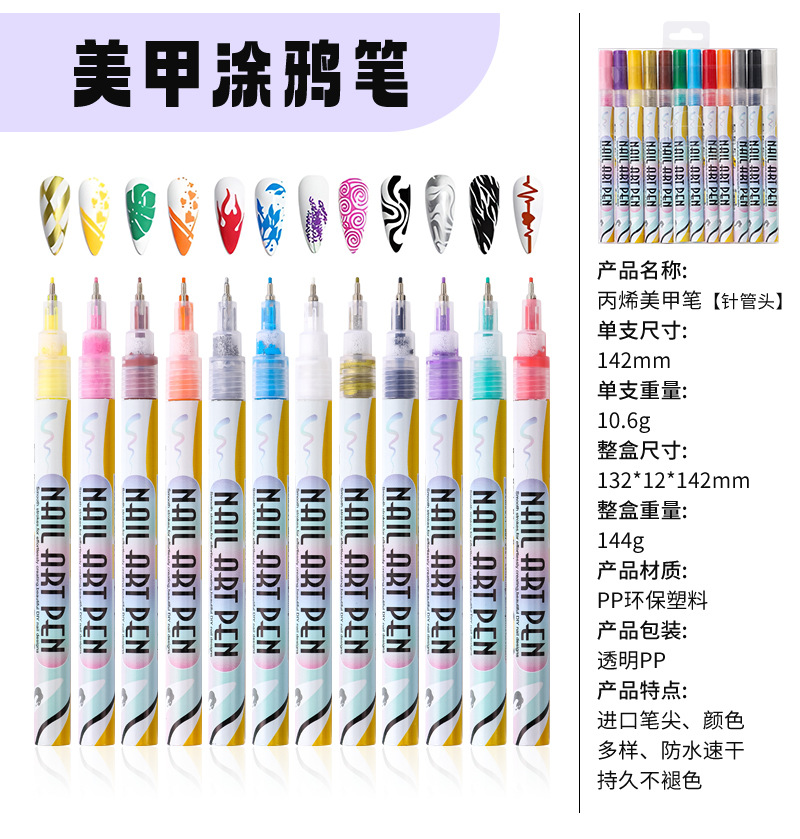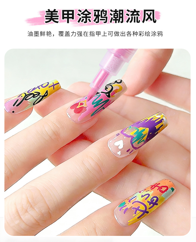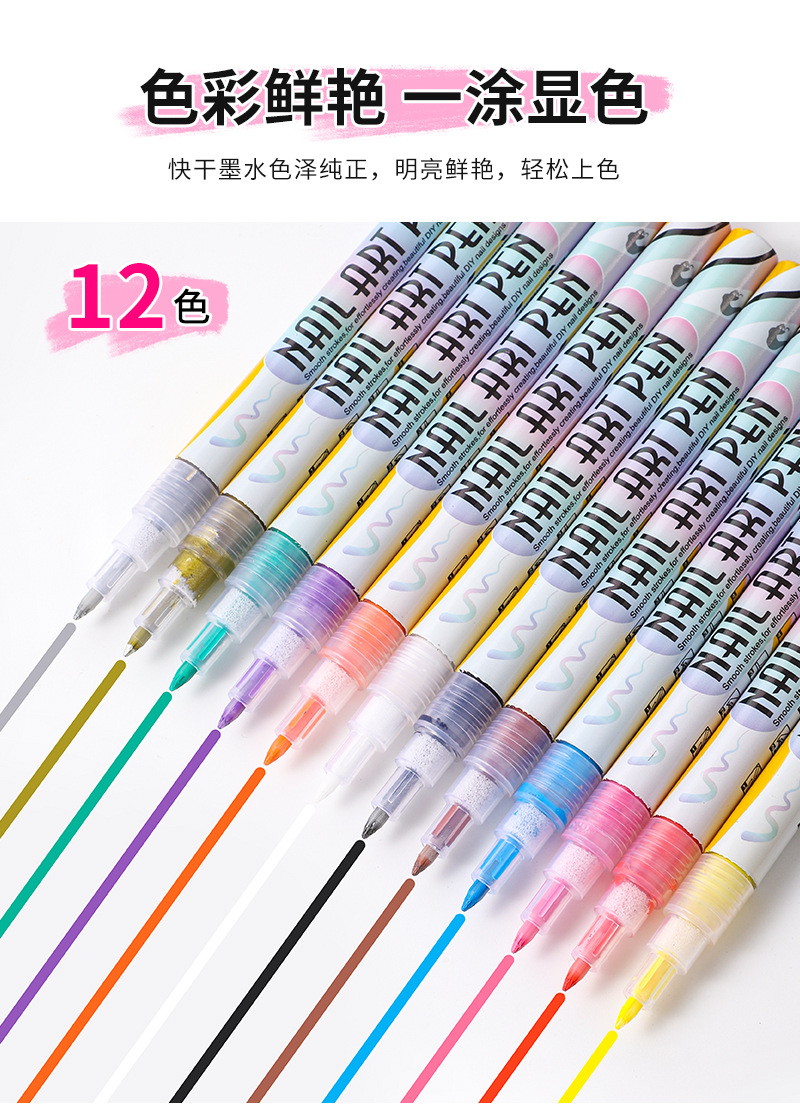 12-color nail art graffiti pen, quick-drying waterproof marker pen for DIY nail decoration, smooth outlining tool pen
