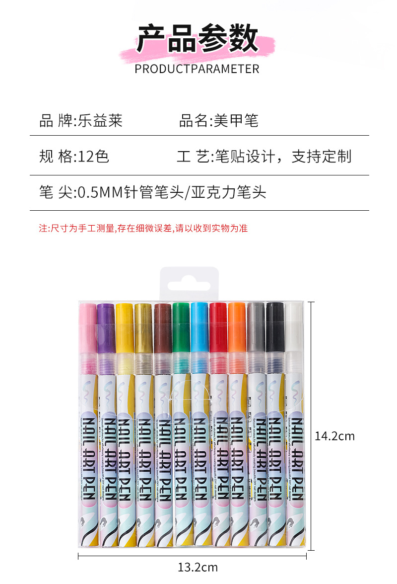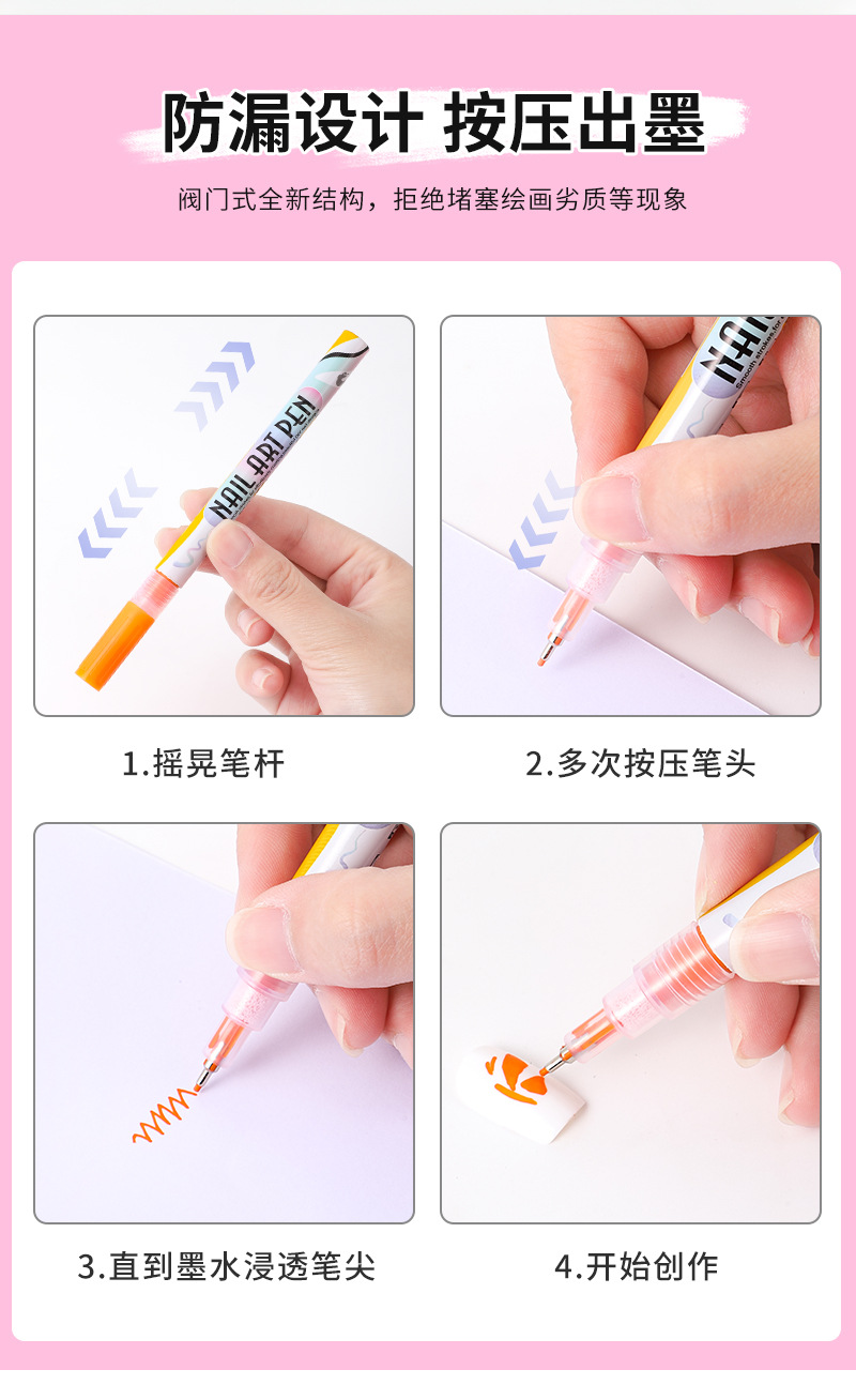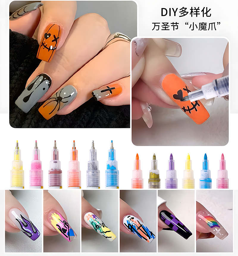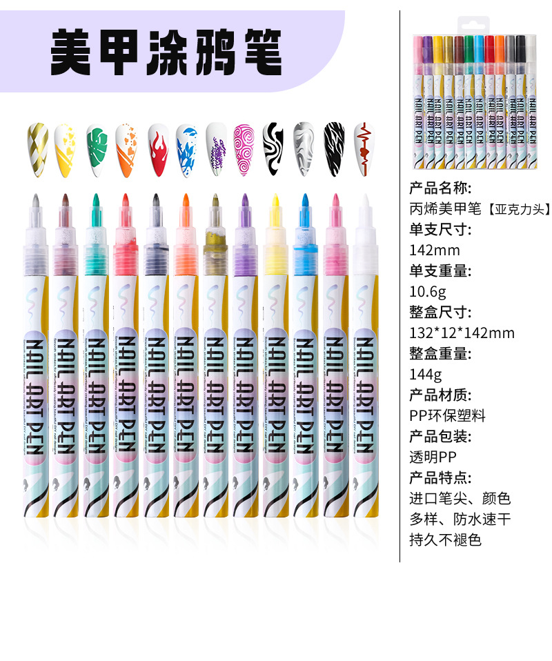 12-color nail art graffiti pen, quick-drying waterproof marker pen for DIY nail decoration, smooth outlining tool pen