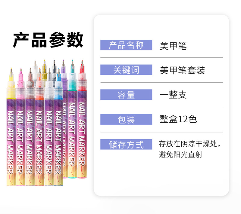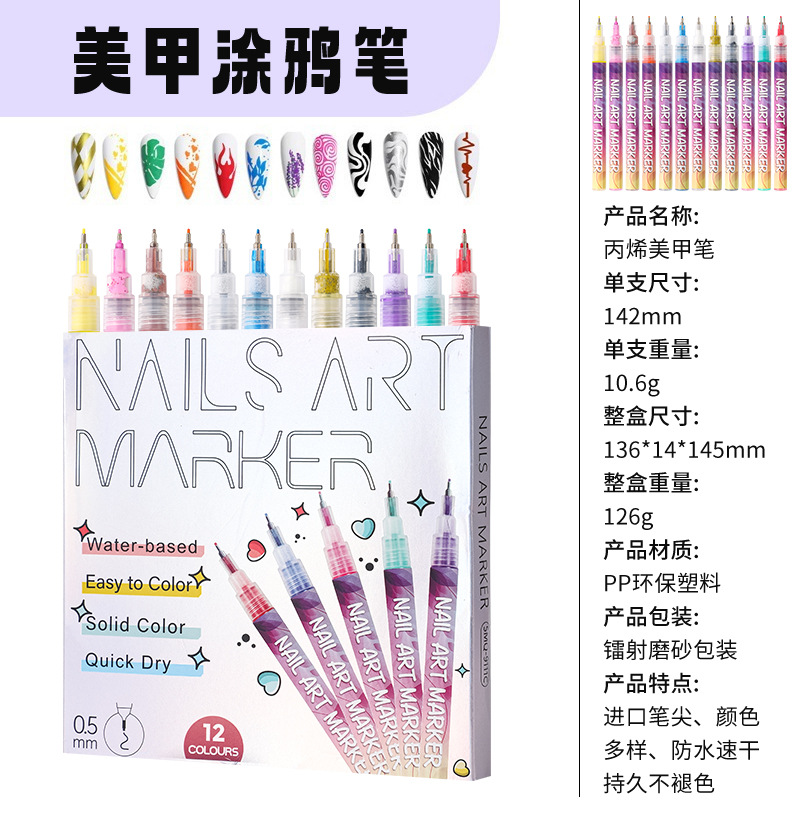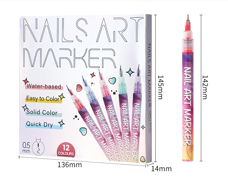 | Specification | Nail pen 12-color box set, 0.5 |