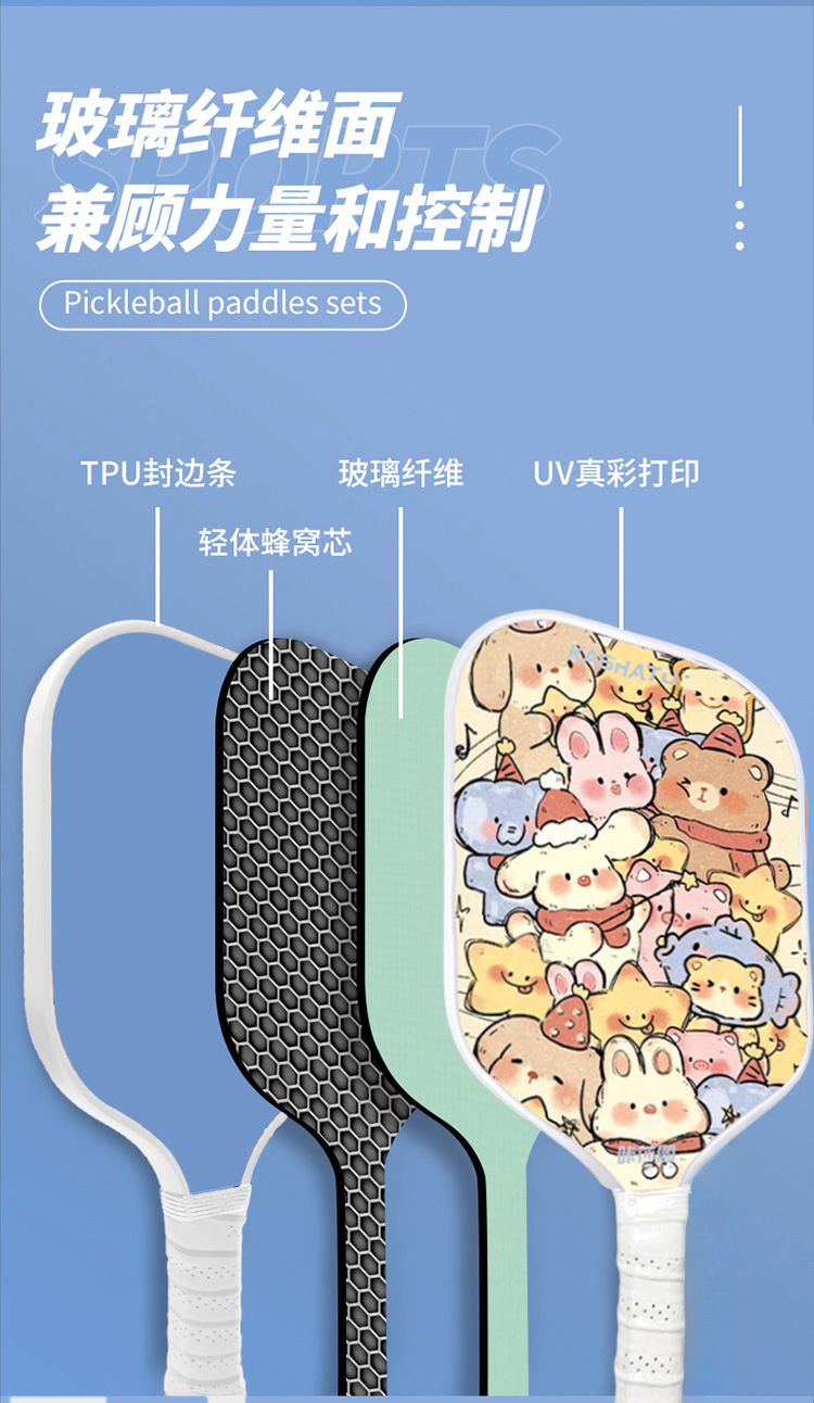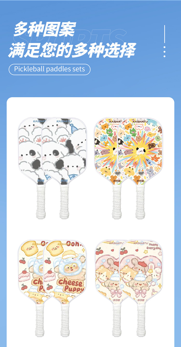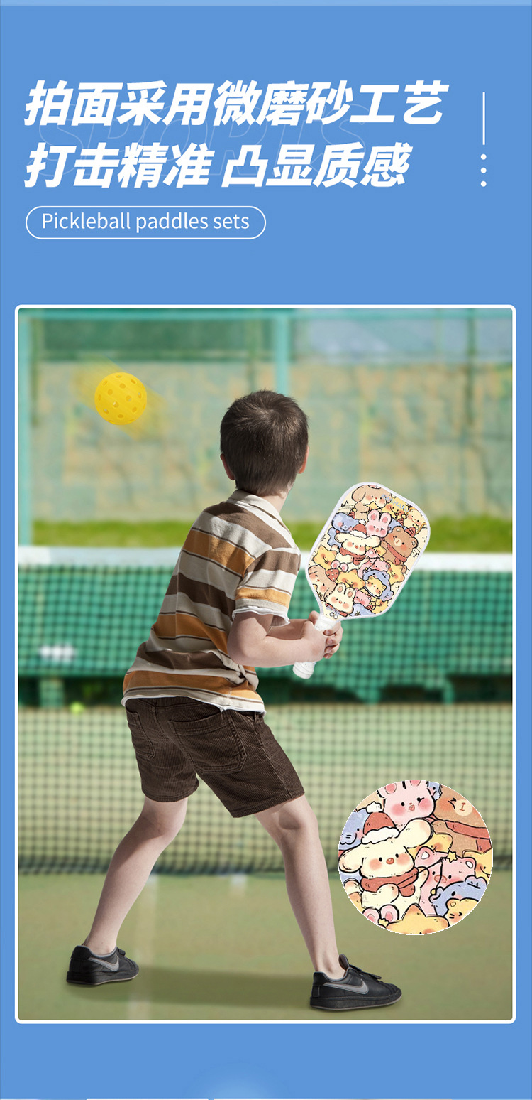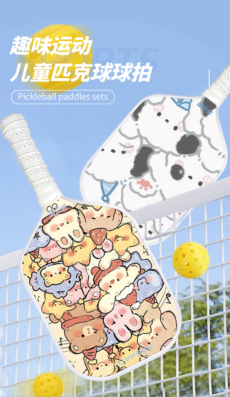 pickball parent-child, children and adult Pickball rackets for outdoor sports, a complete set of cute cartoon pattern rackets
