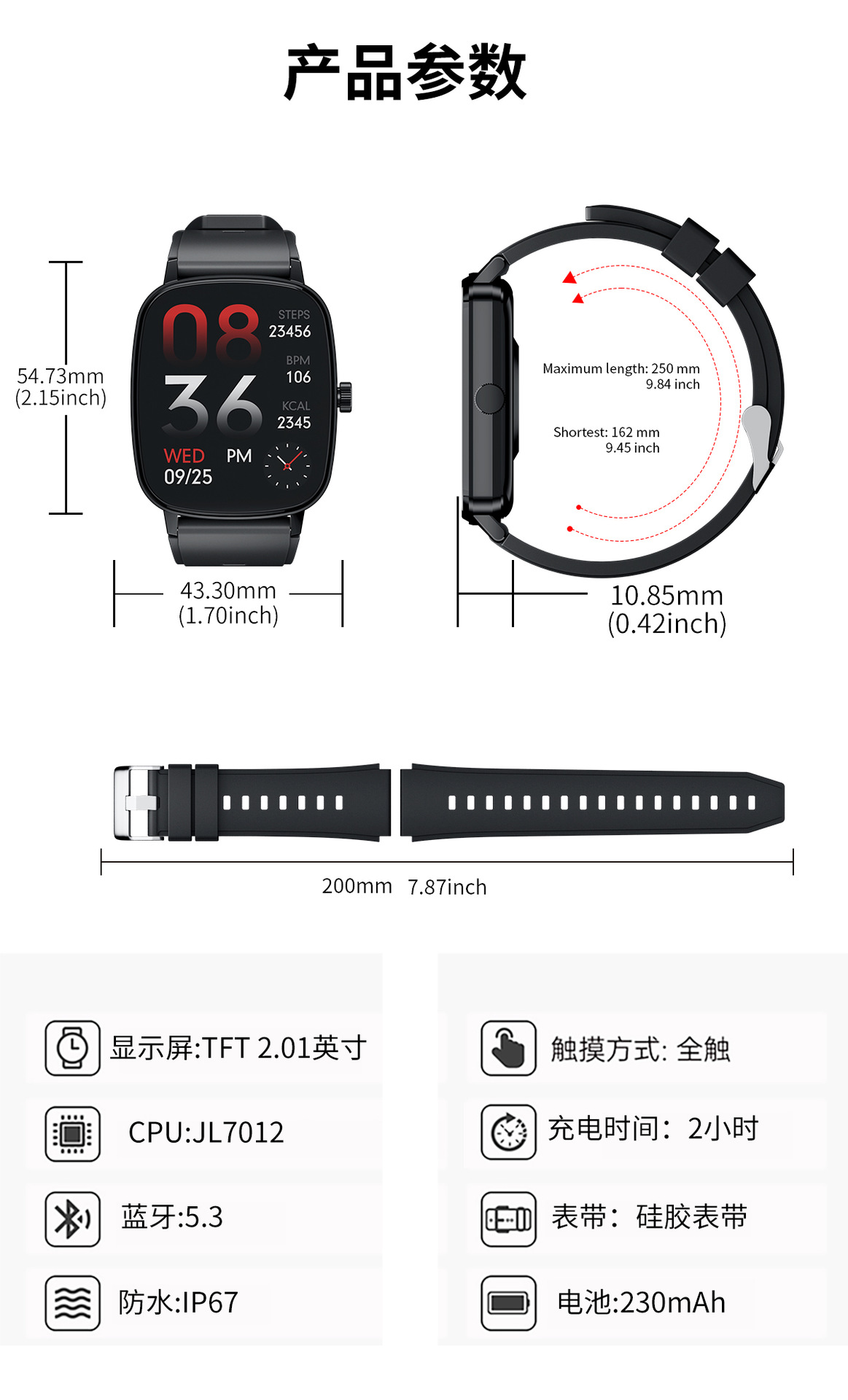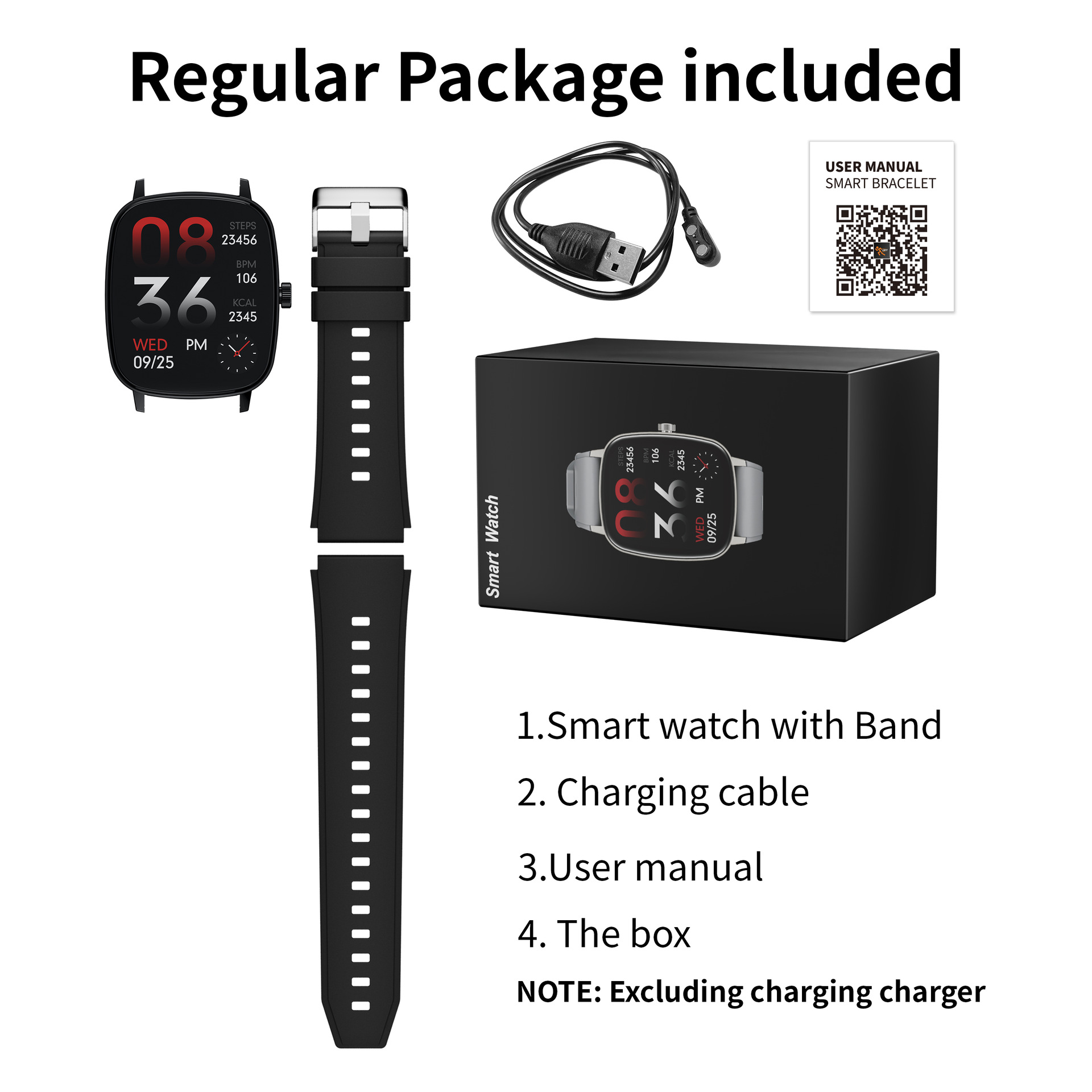 | 包装清单 | 手表 充电线 说明书 包装盒 |