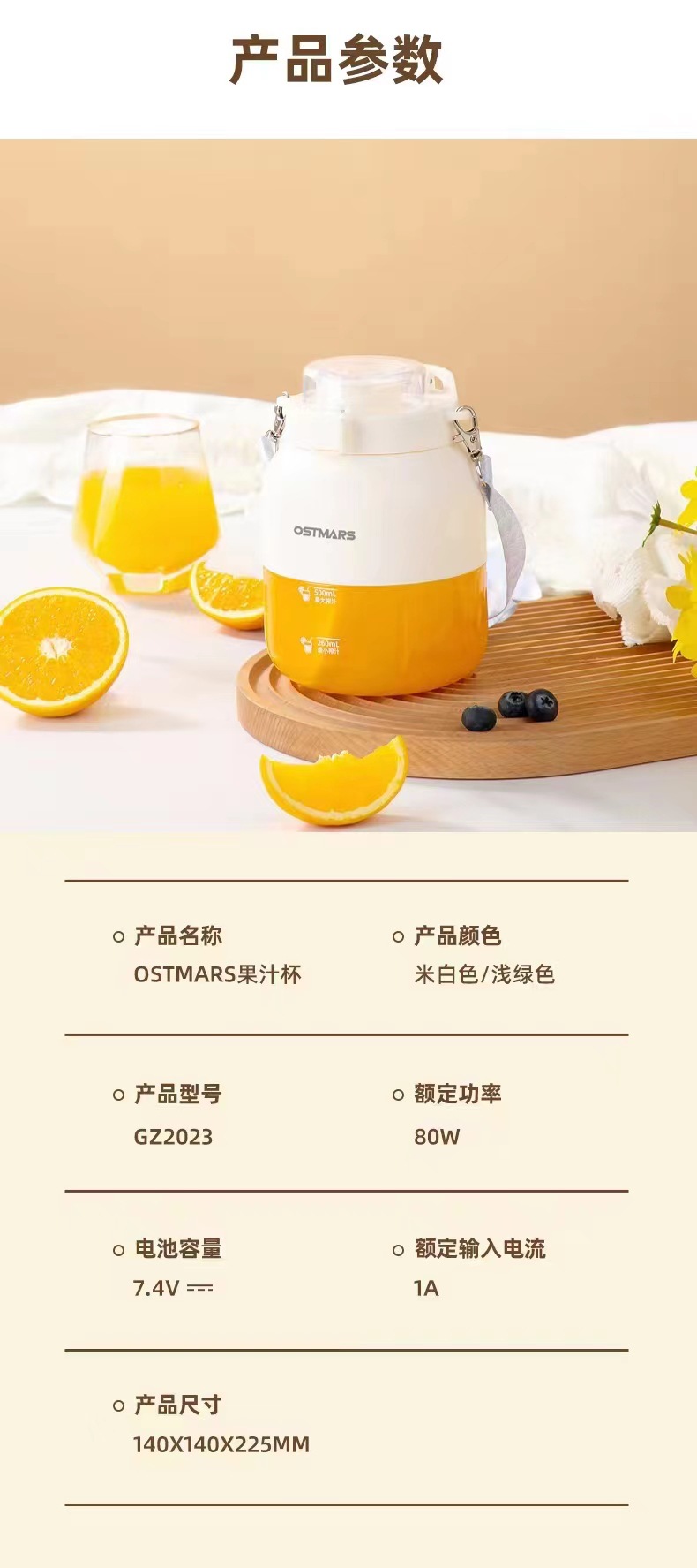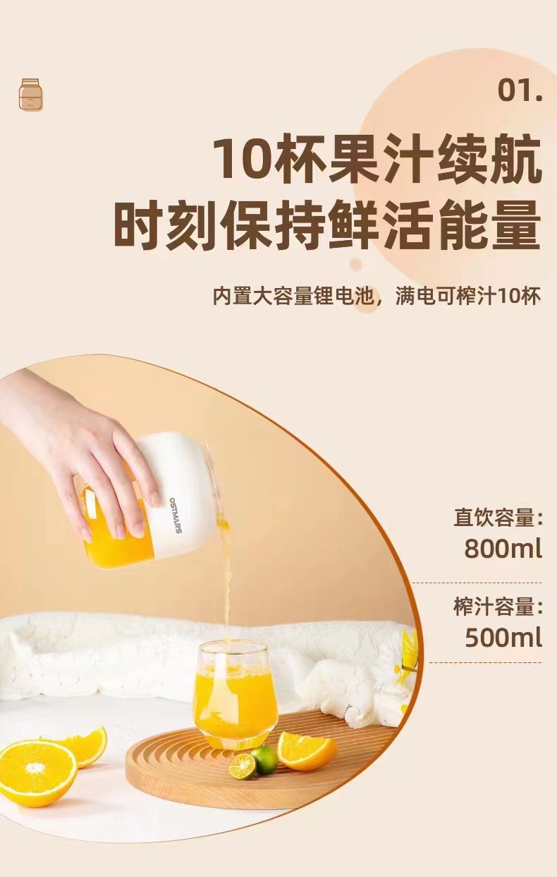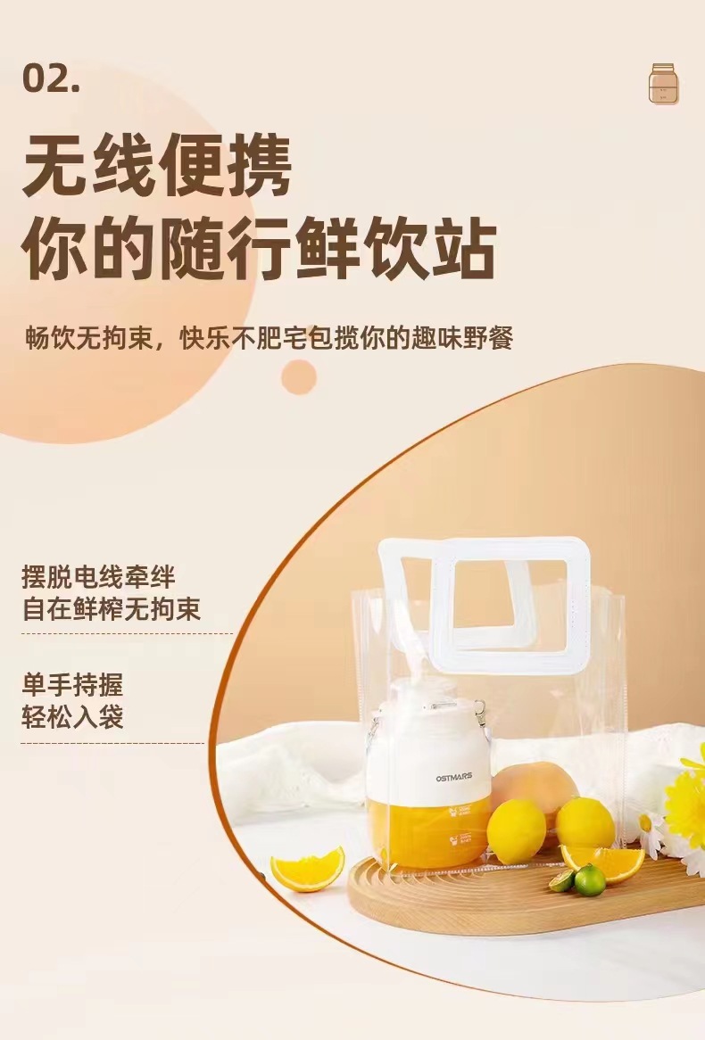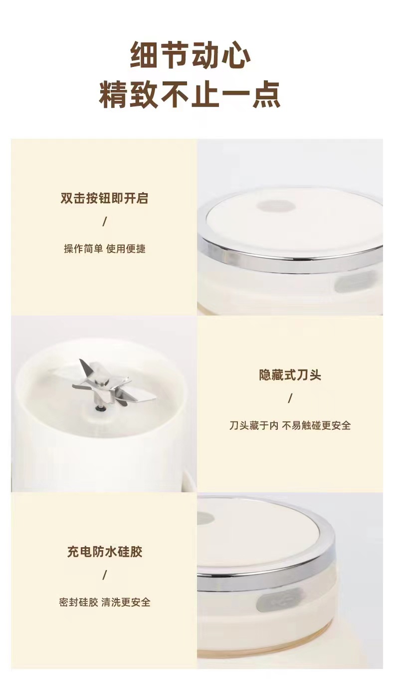 | Packaging list | Direct drinking cap, juicing cap, shoulder strap, straw, charging cable, instruction manual |