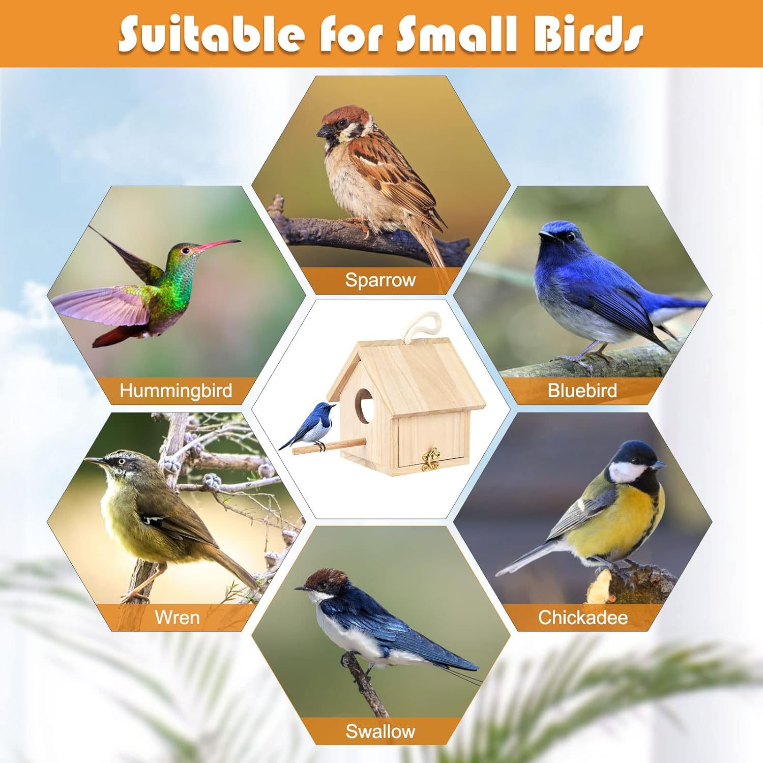 Natural solid wood bird nests are sturdy, thick, stable, environmentally friendly and breathable, making them suitable for hanging in courtyards, balconies and gardens