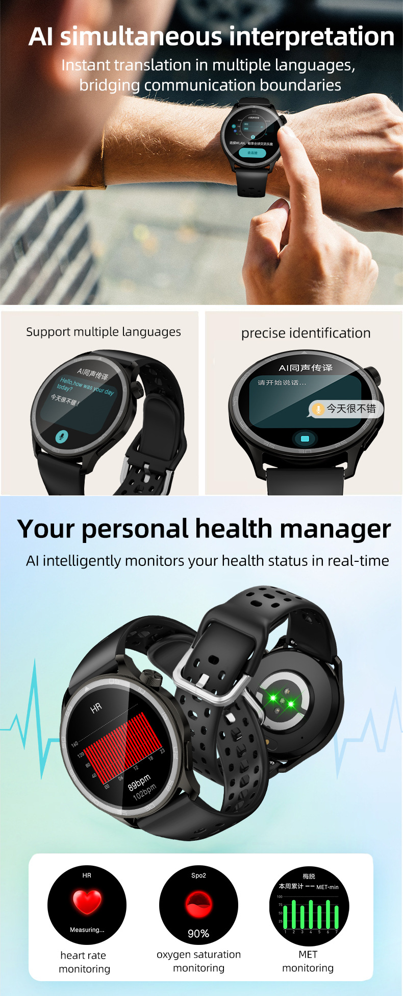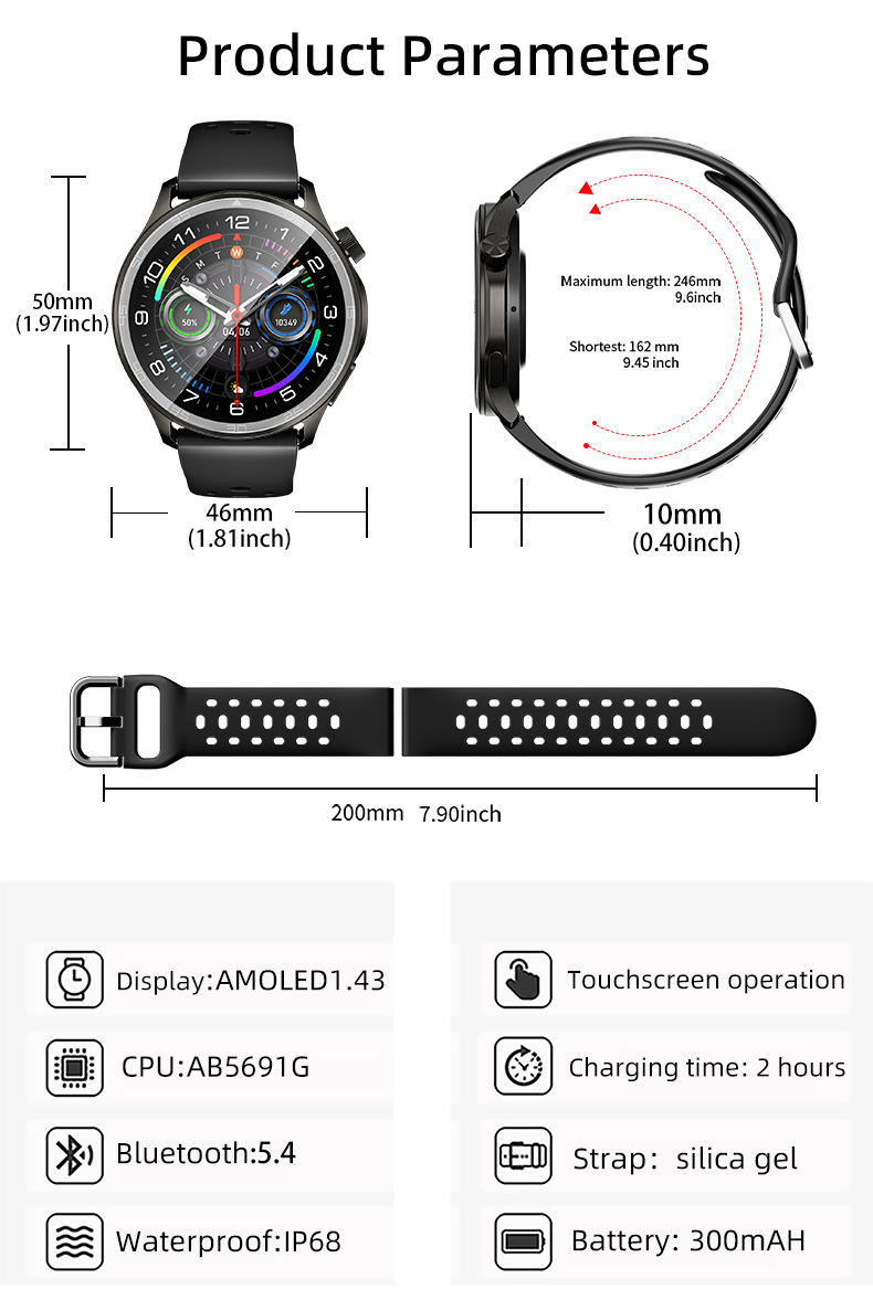 | 包装清单 | 手表,彩盒, 充电线, 说明书 |