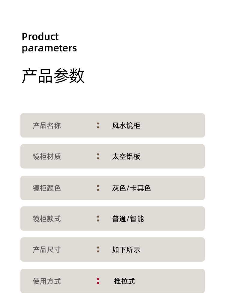 | Specification | Khaki 60cm feng shui mirror cabinet |