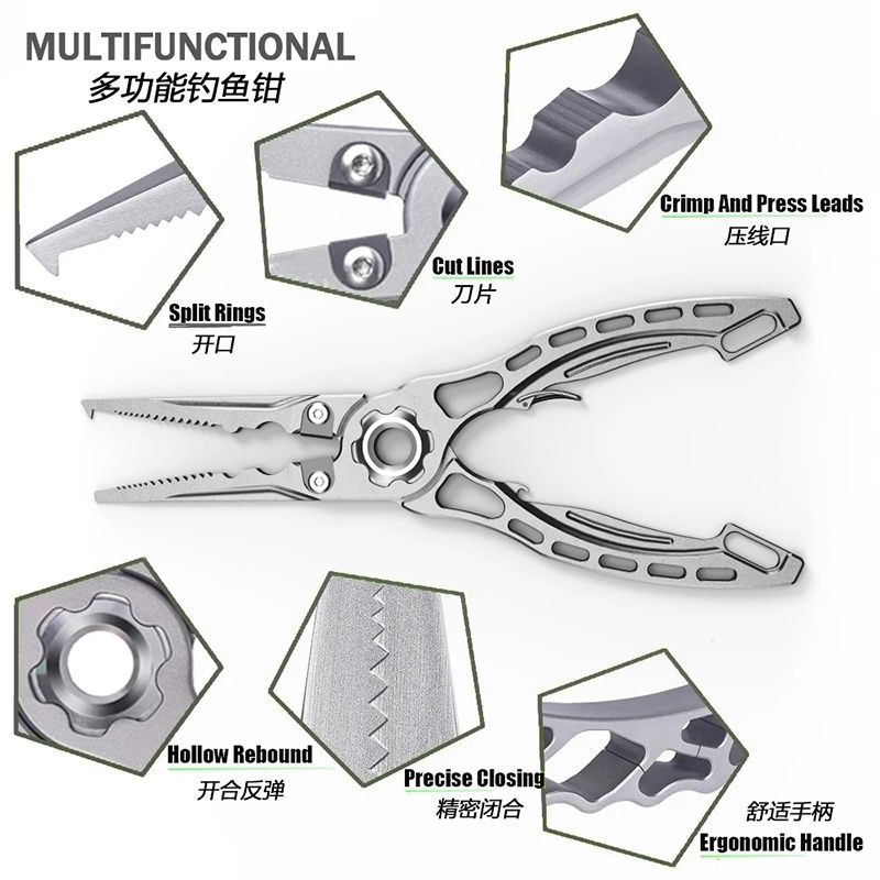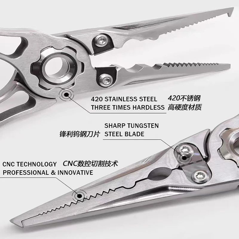 Stainless steel multi-functional fishing pliers, line cutters, hook removers, lure pliers, sea fishing line cutters, tungsten steel cutters, fish control combination tools