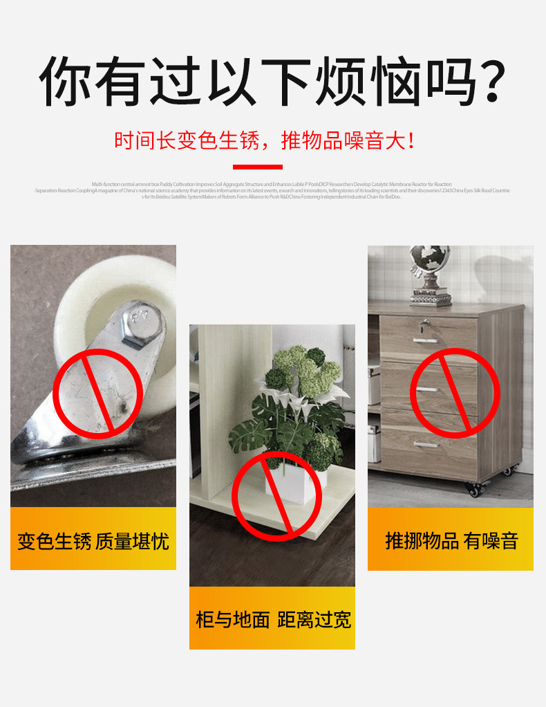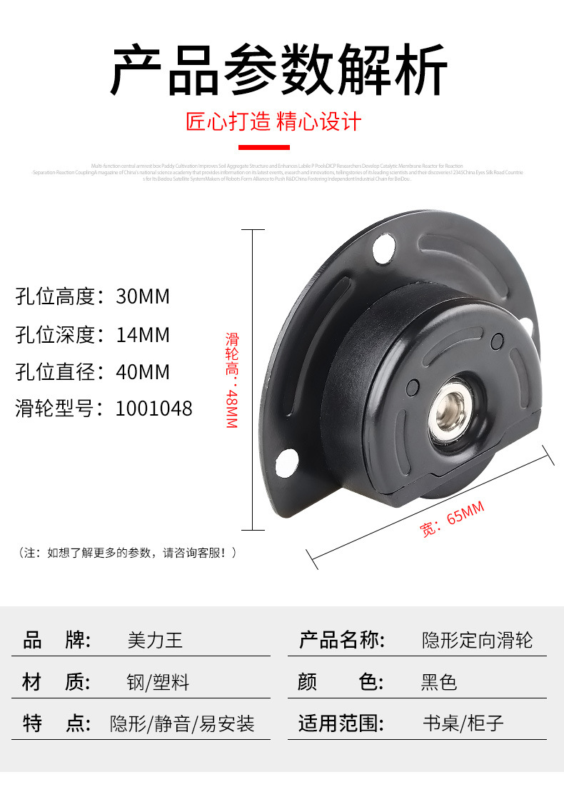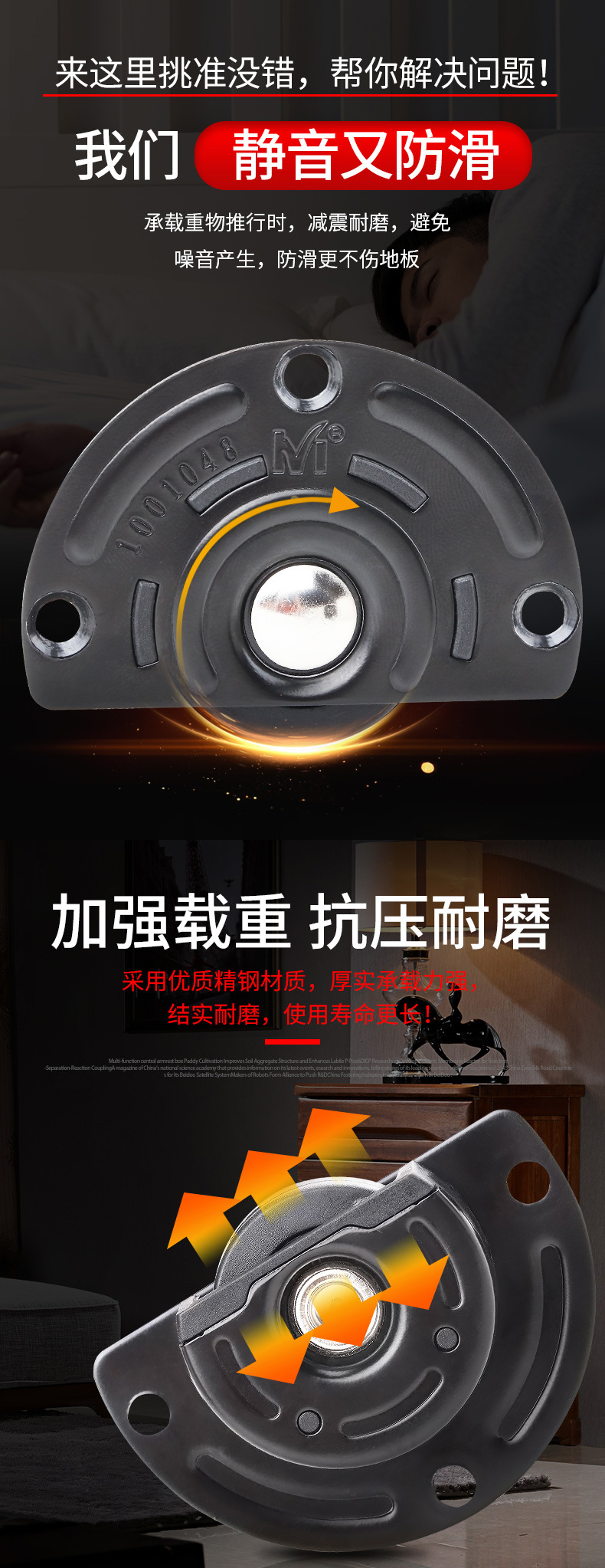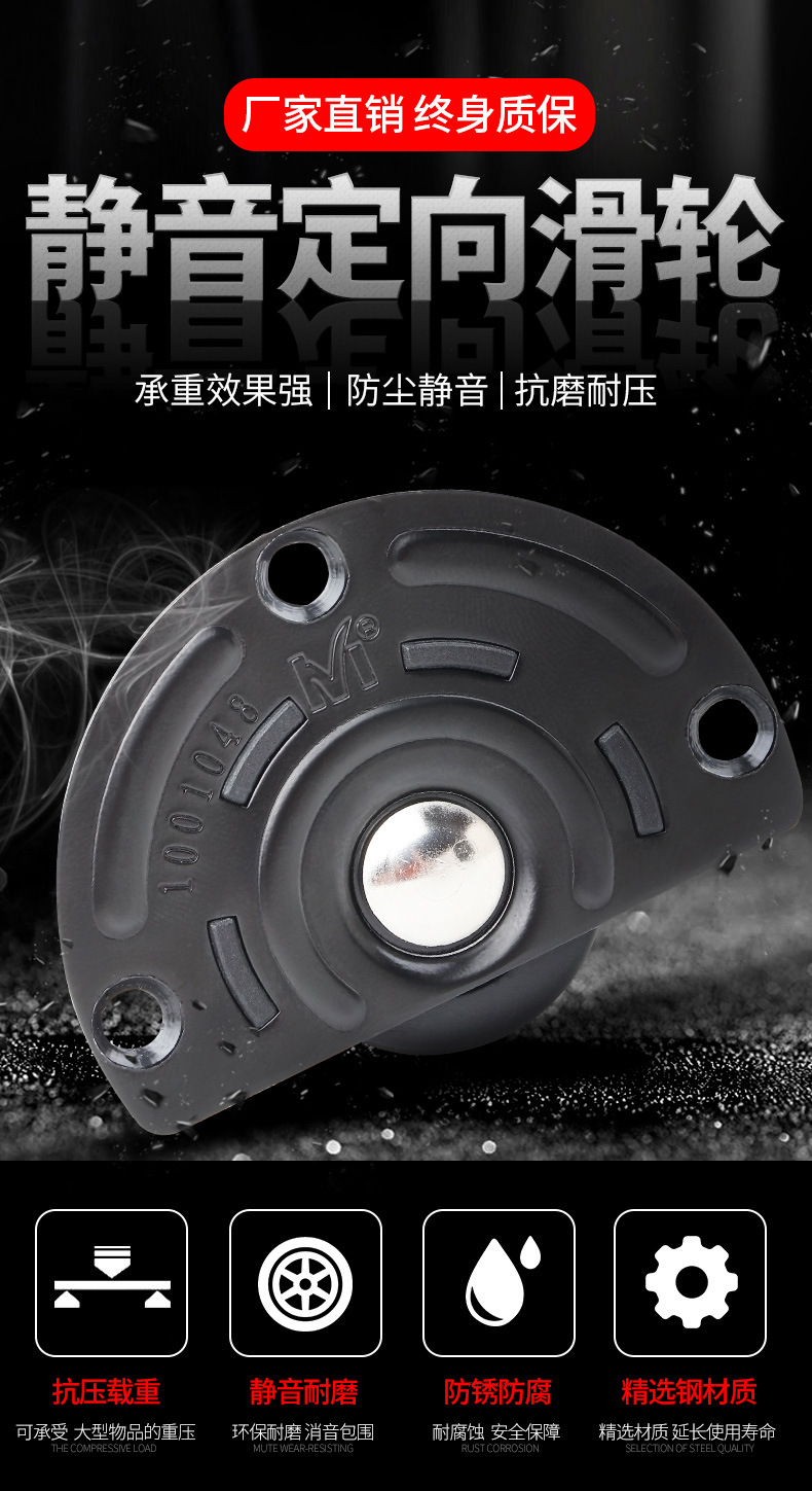 | Characteristics of casters | High-load-bearing, directional pulley |