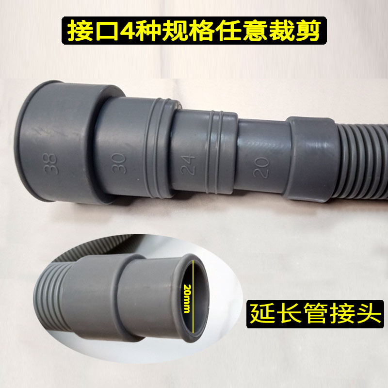 The drainage pipe and outlet pipe of the drum washing machine are thickened, the drainage is extended, and there are multiple diameters ranging from 20 to 38mm with quick drainage interfaces