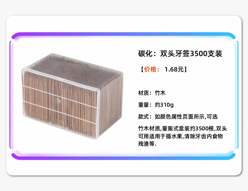 | Specification | Natural color toothpicks - double-pointed box set - approximately 3,000 pieces |