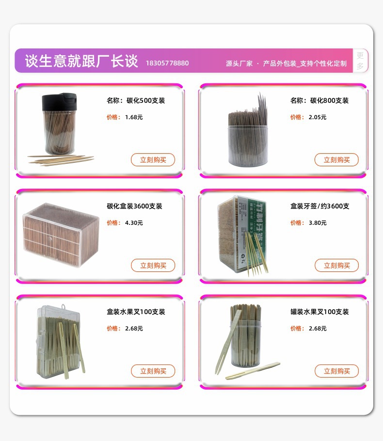 | Item number | Mufan 20250312 Toothpick Processing Factory Manufacturer Strip, bottle, barrel, cylinder, hotel, restaurant, restaurant, double head, single head |