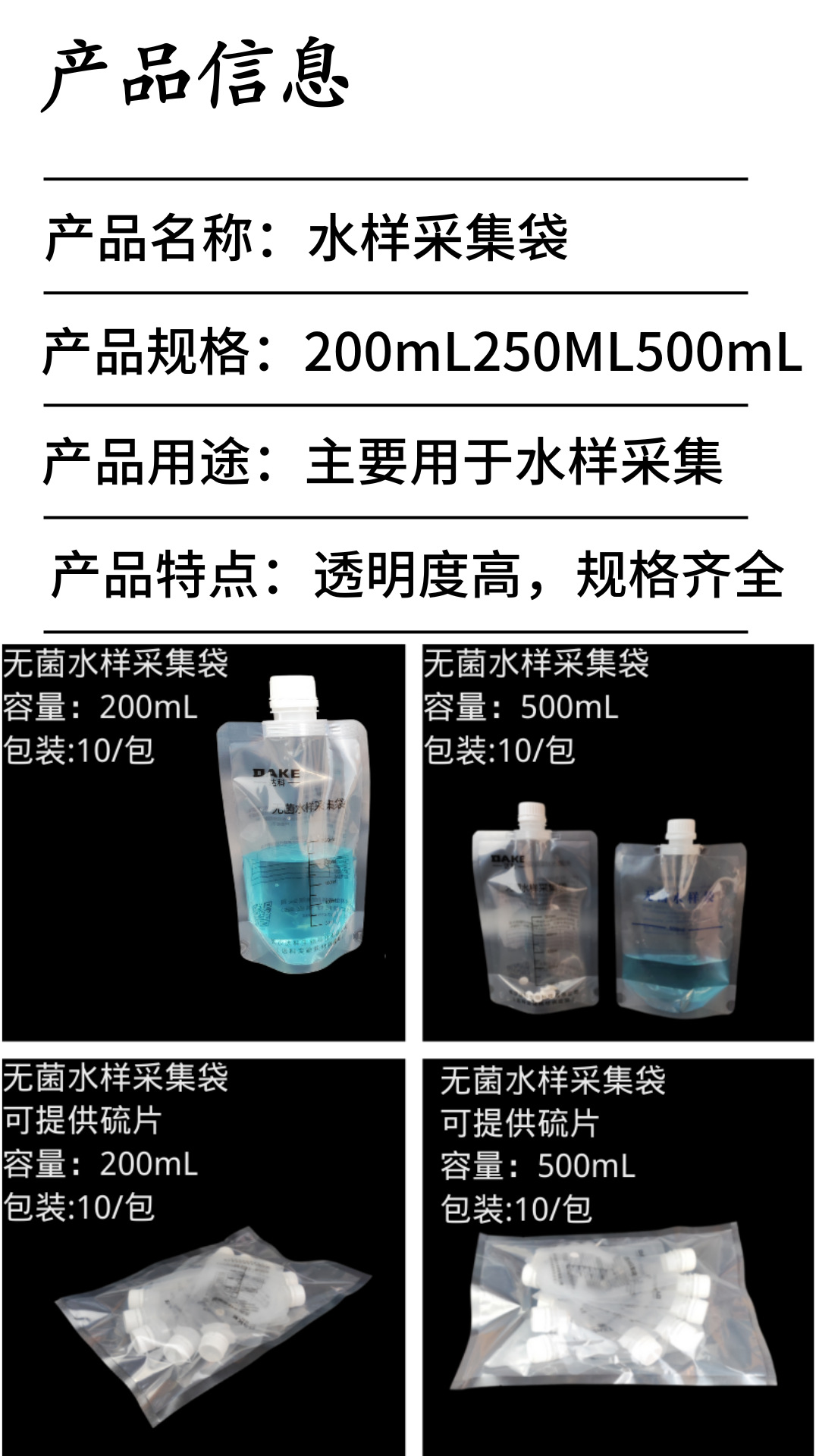 | Name | Sterile water sample bag |