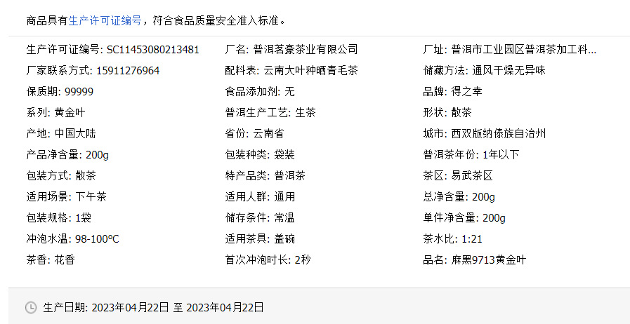 | Product category | "Sheng Pu |