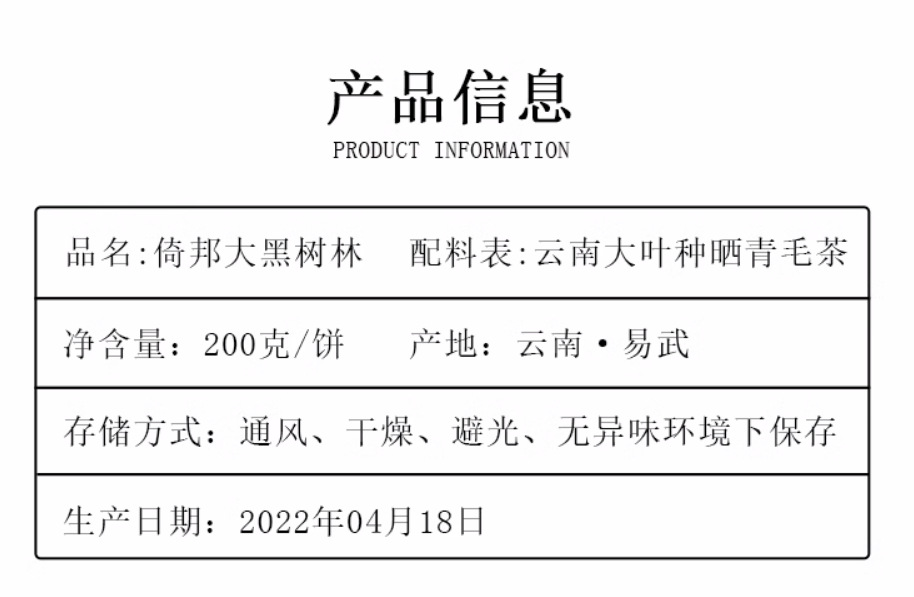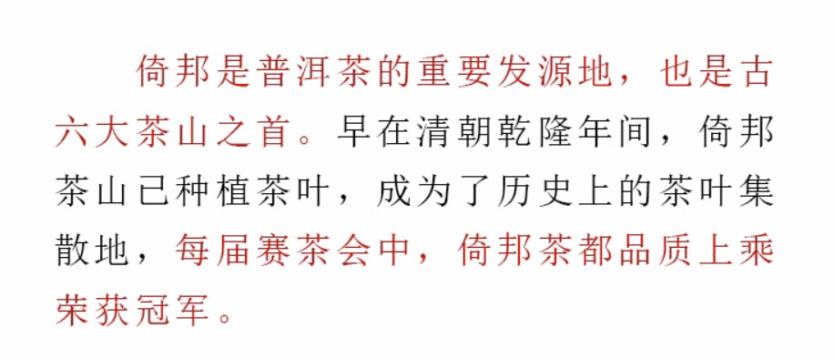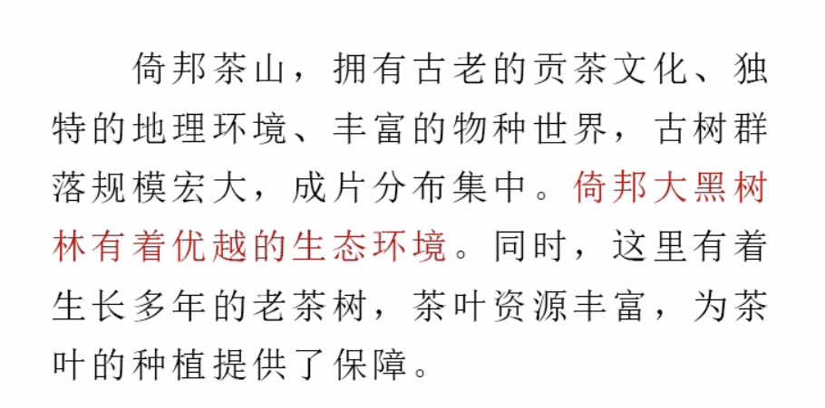 | Tea area | Yiwu tea-growing area |