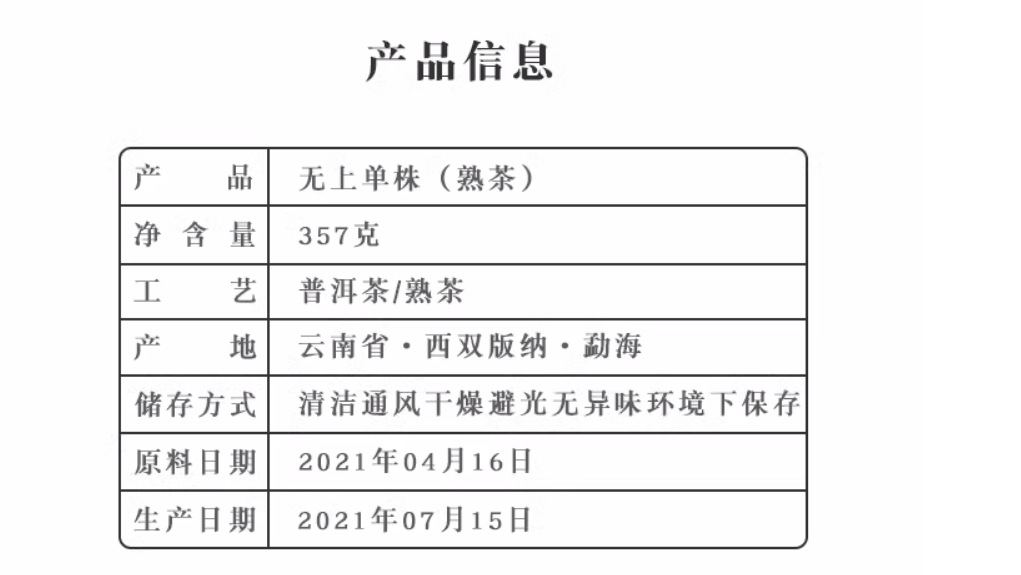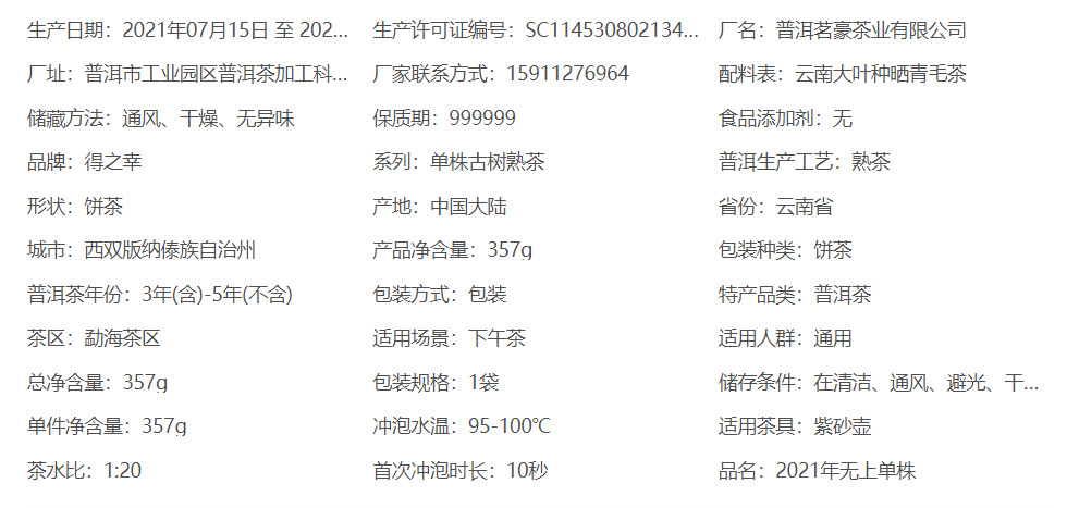 | Manufacturer | Pu 'er Minghao Tea Industry Co., LTD |