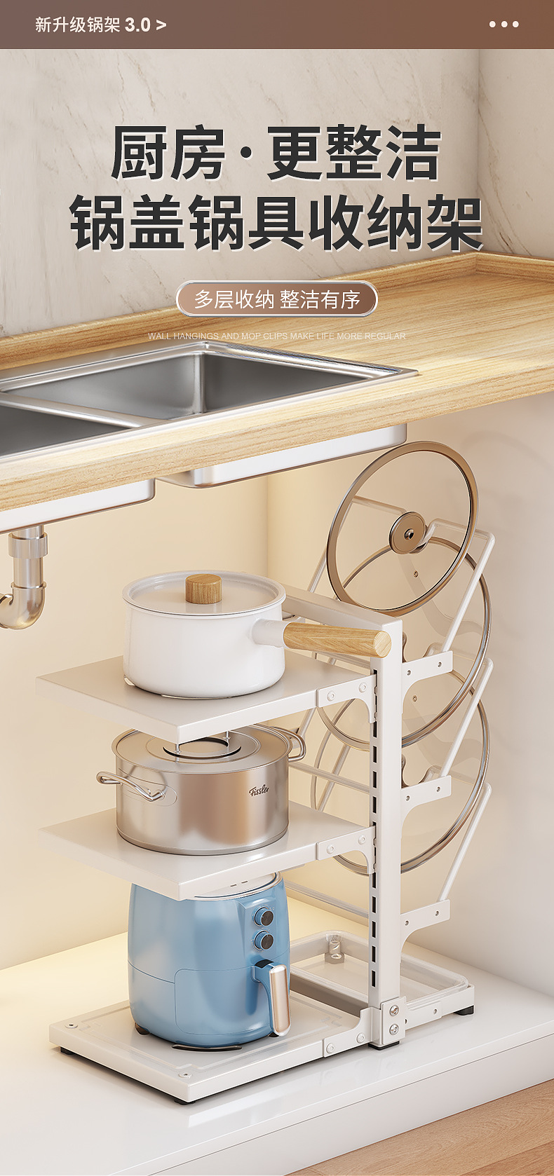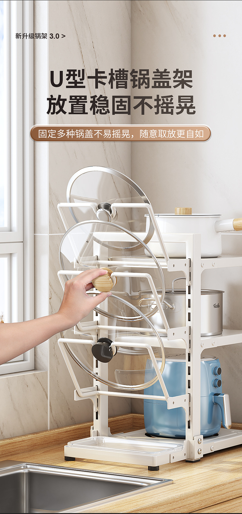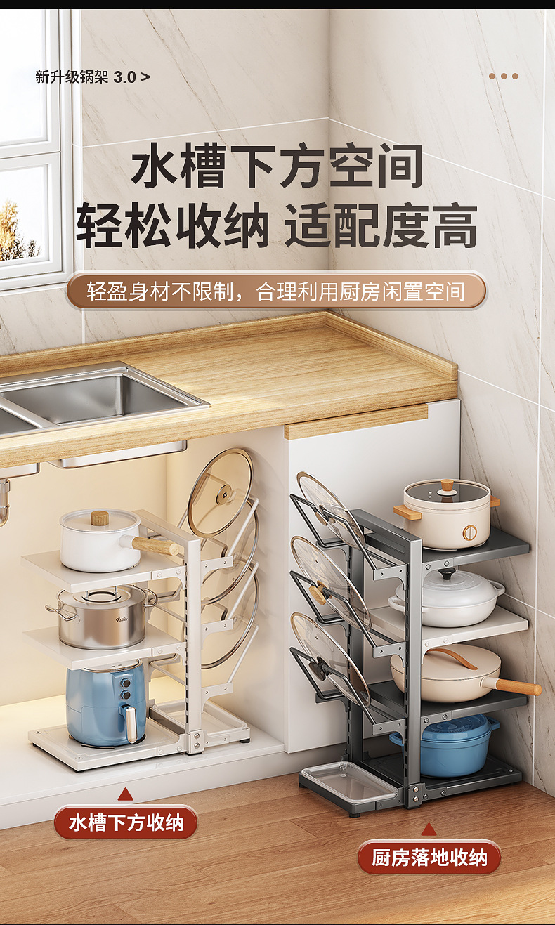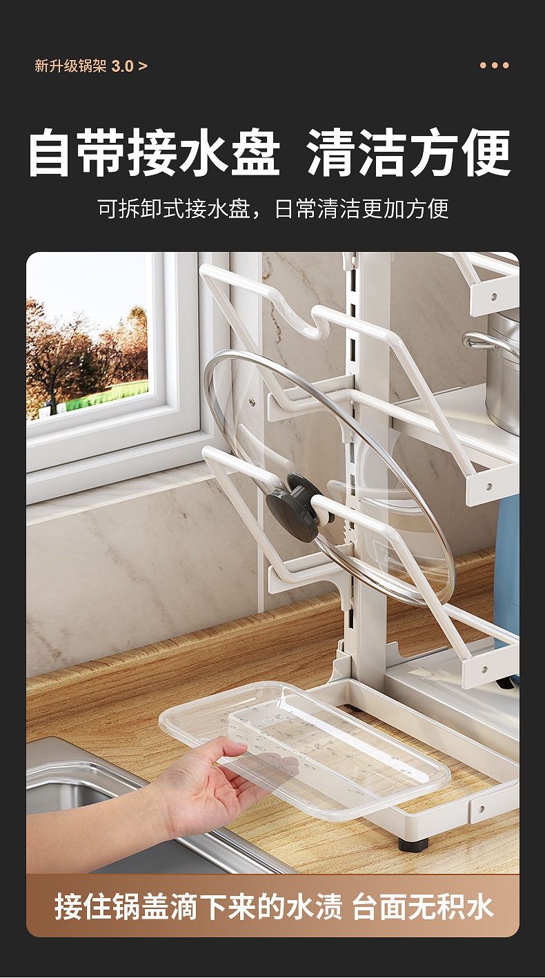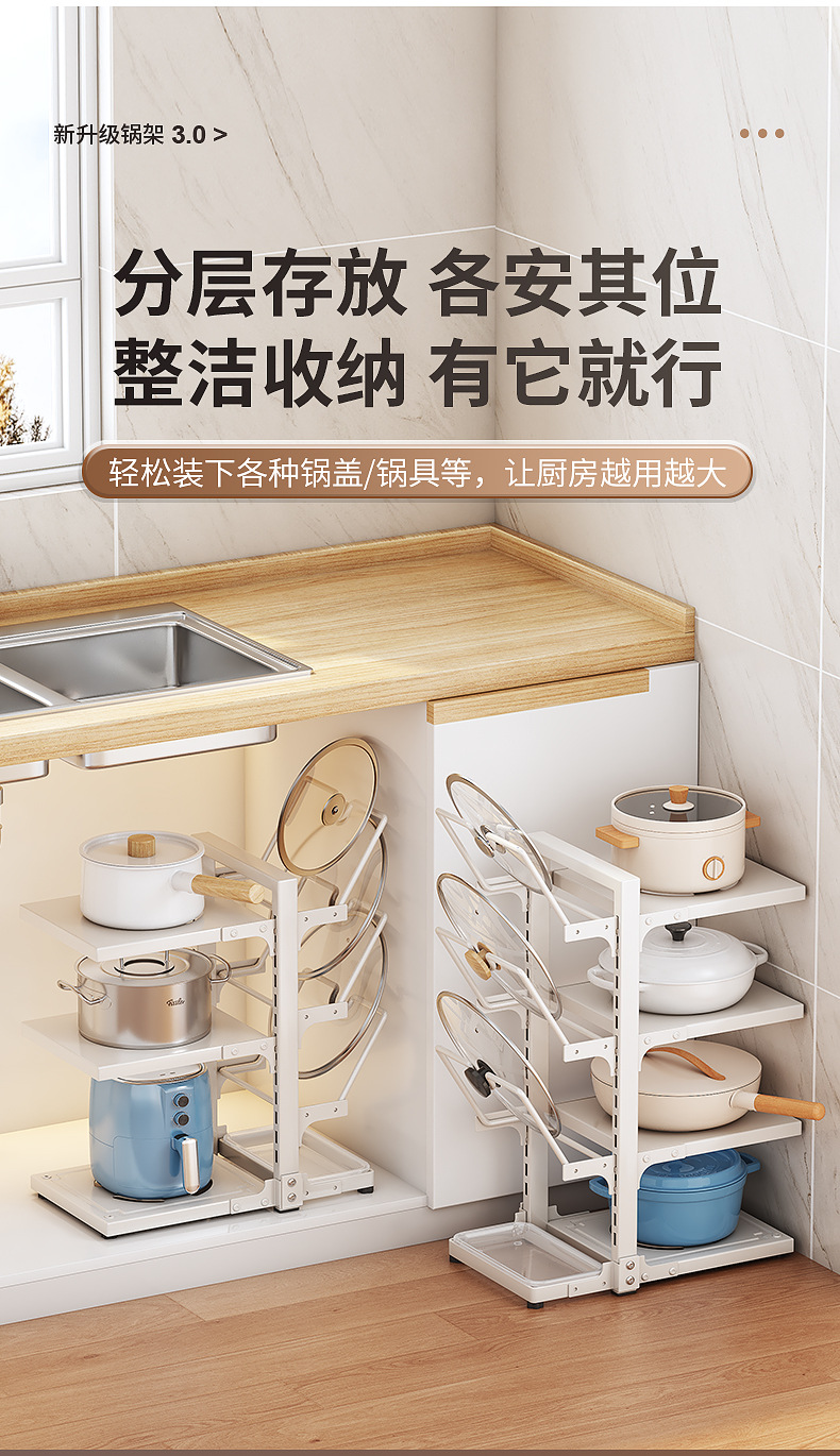 | Color | Three-layer integrated pot and lid rack - white |