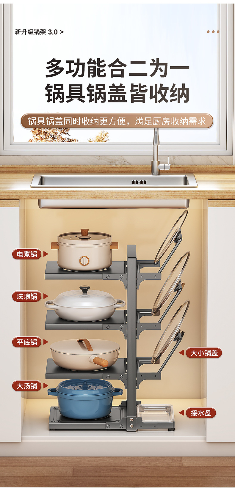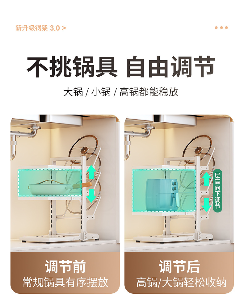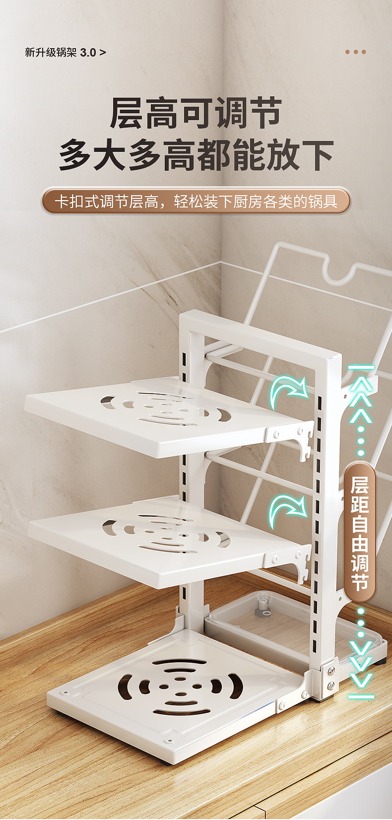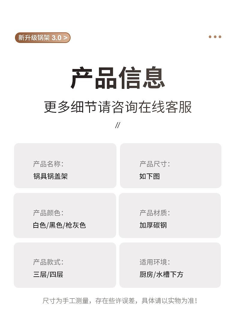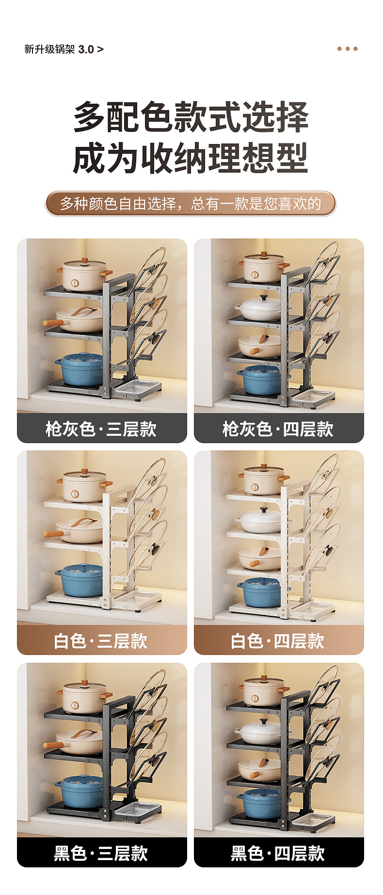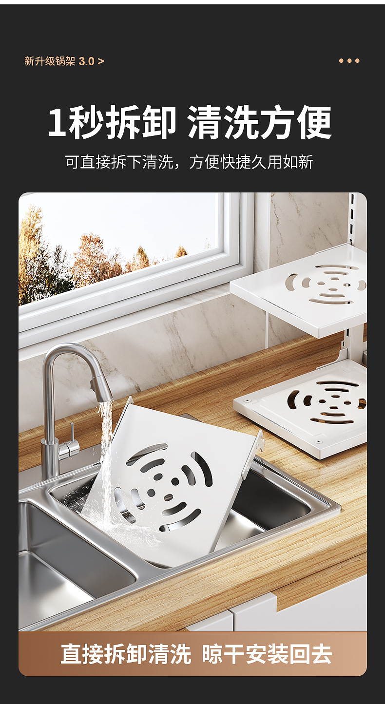 | Color | Three-layer integrated pot and lid rack - white |