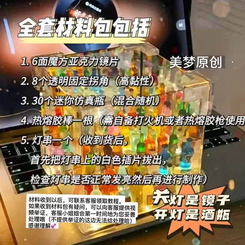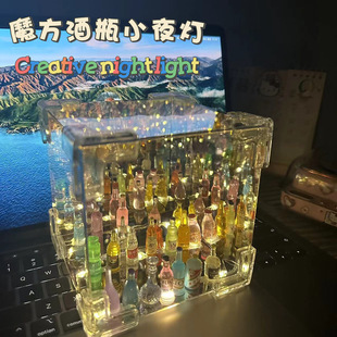 Handmade diy wine bottle material package finished product, atmosphere, creative best friend gift, Rubik's Cube mirror, night light