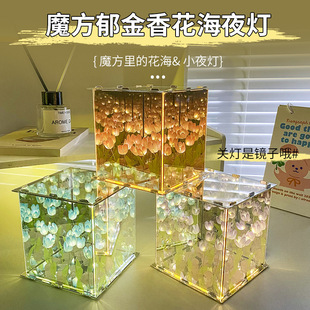 A cross-border diy creative handmade gift for your girlfriend and best friend's birthday: an octagonal tulip and rose sea night light