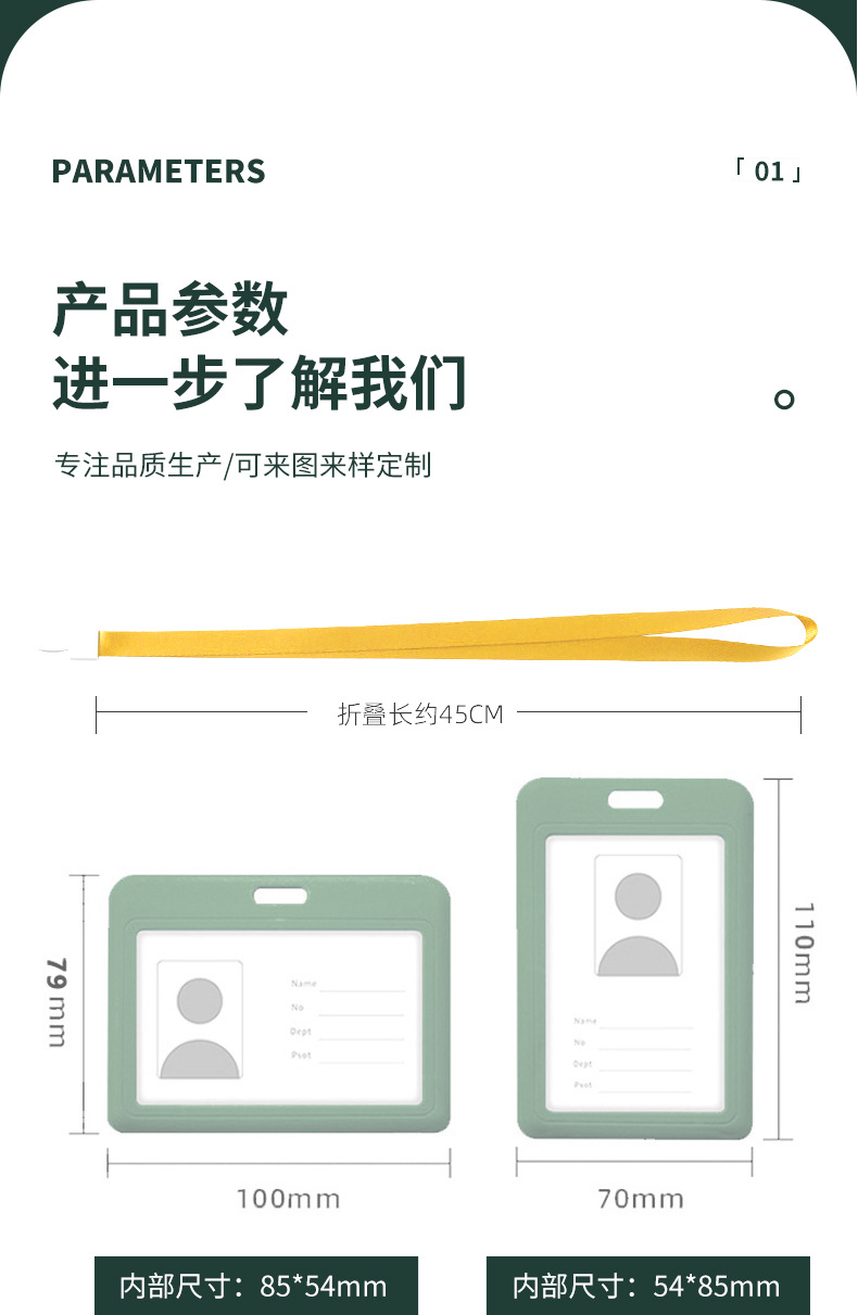 New ID card holder, transparent card holder, employee ID card, student access control card, lanyard, vertical design, cross-border exclusive hard card holder