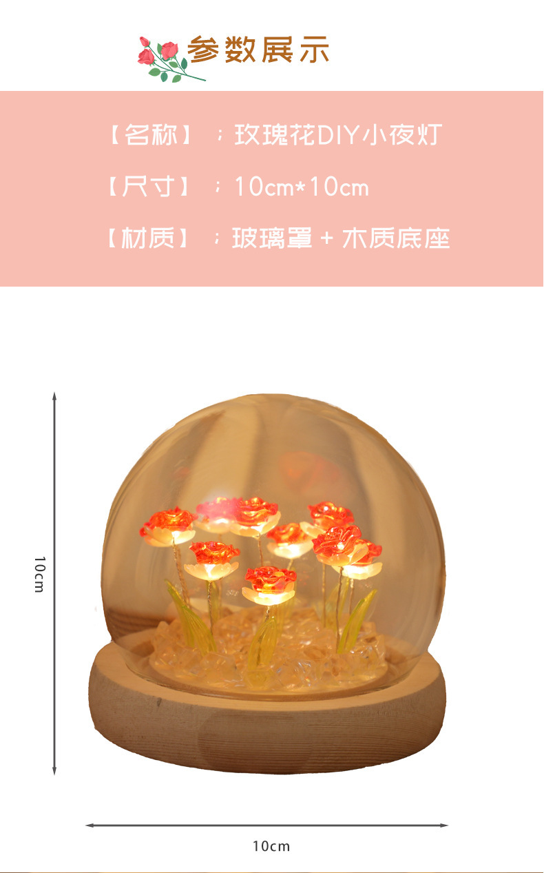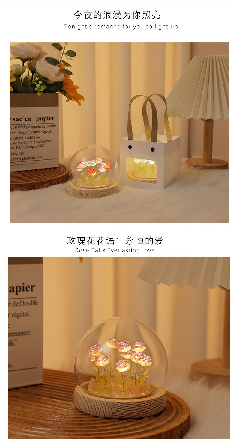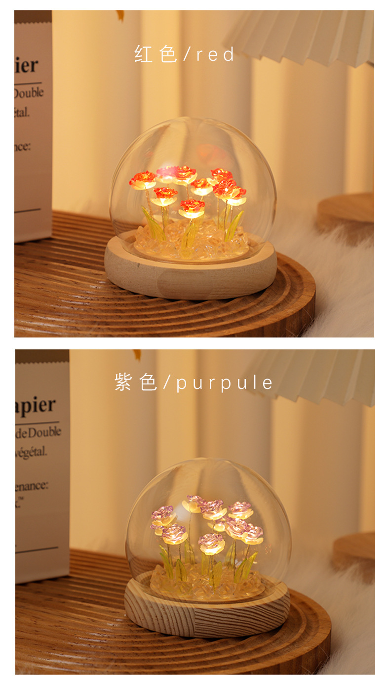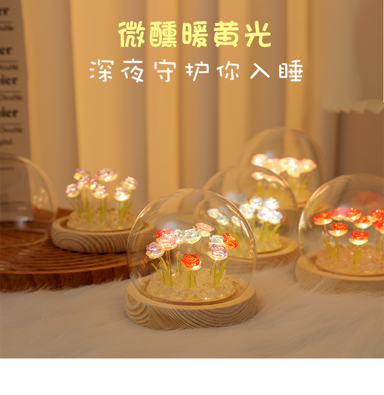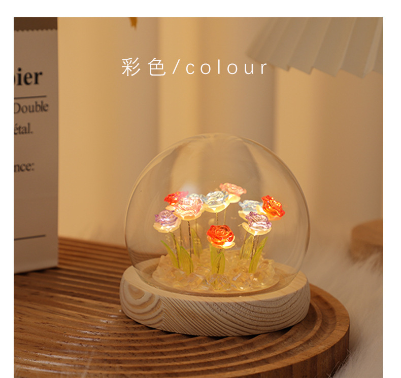 Creative diy crystal ball rose night light birthday gift for female best friends, a niche atmosphere light decoration