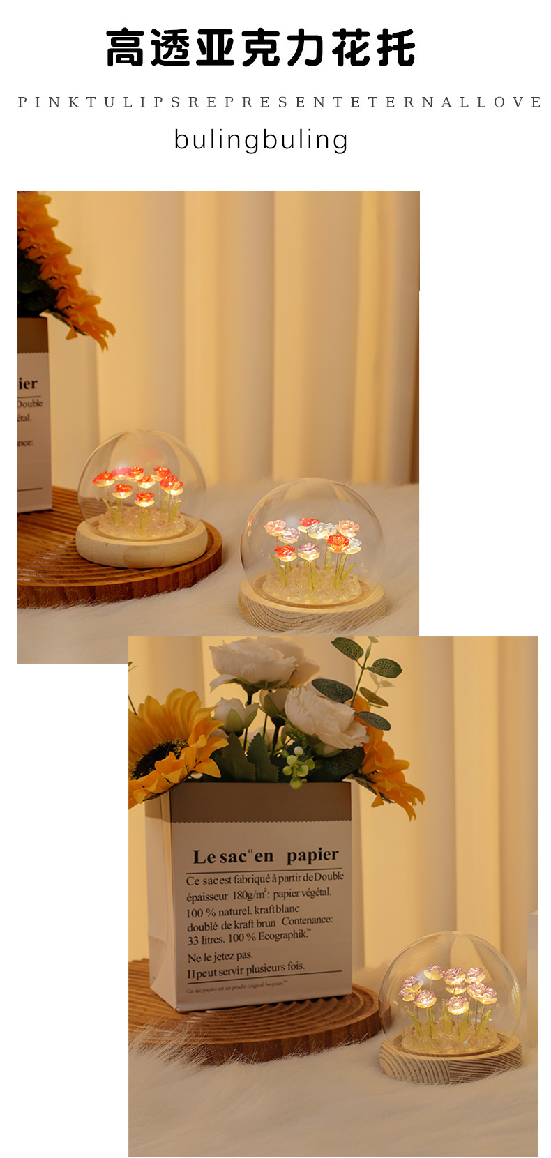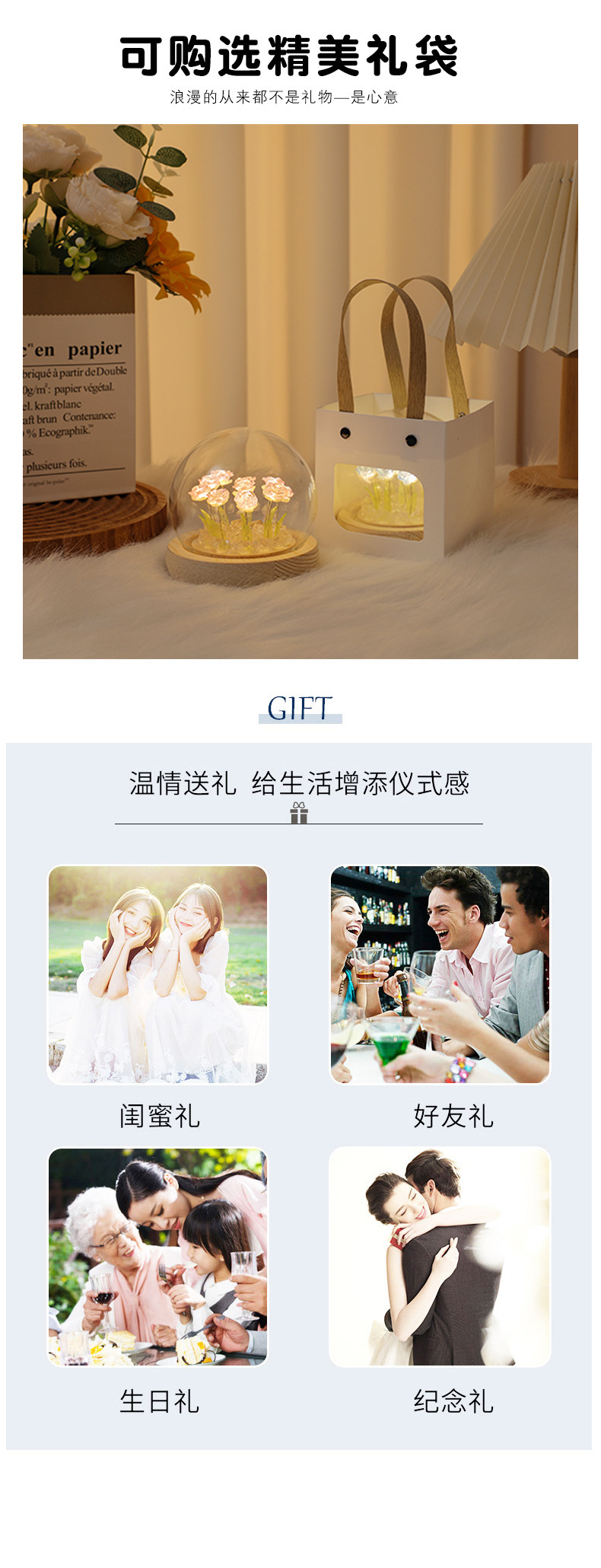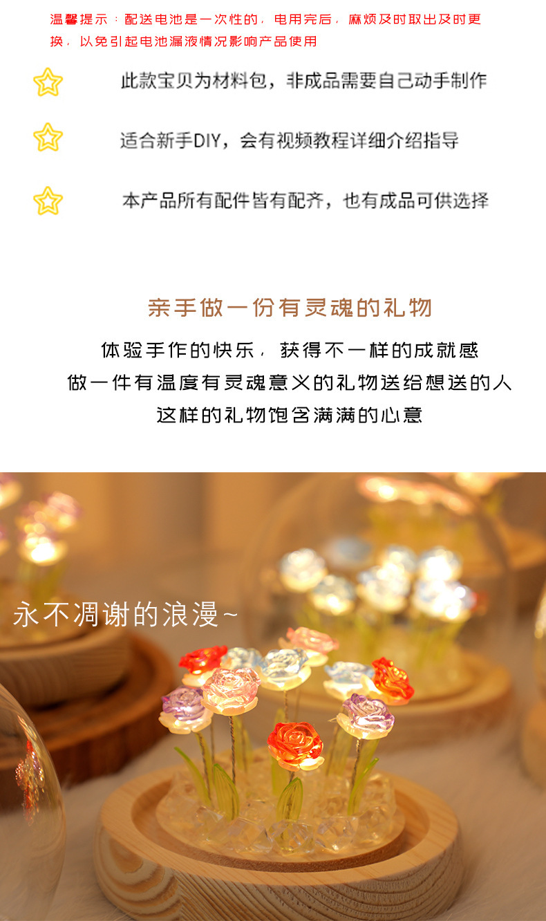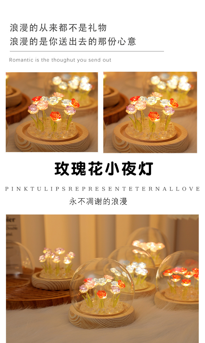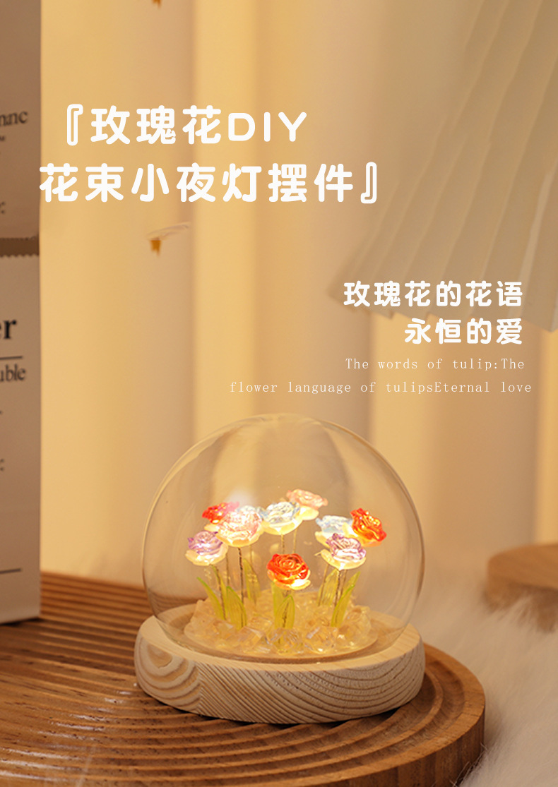 Creative diy crystal ball rose night light birthday gift for female best friends, a niche atmosphere light decoration