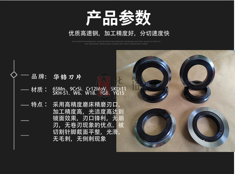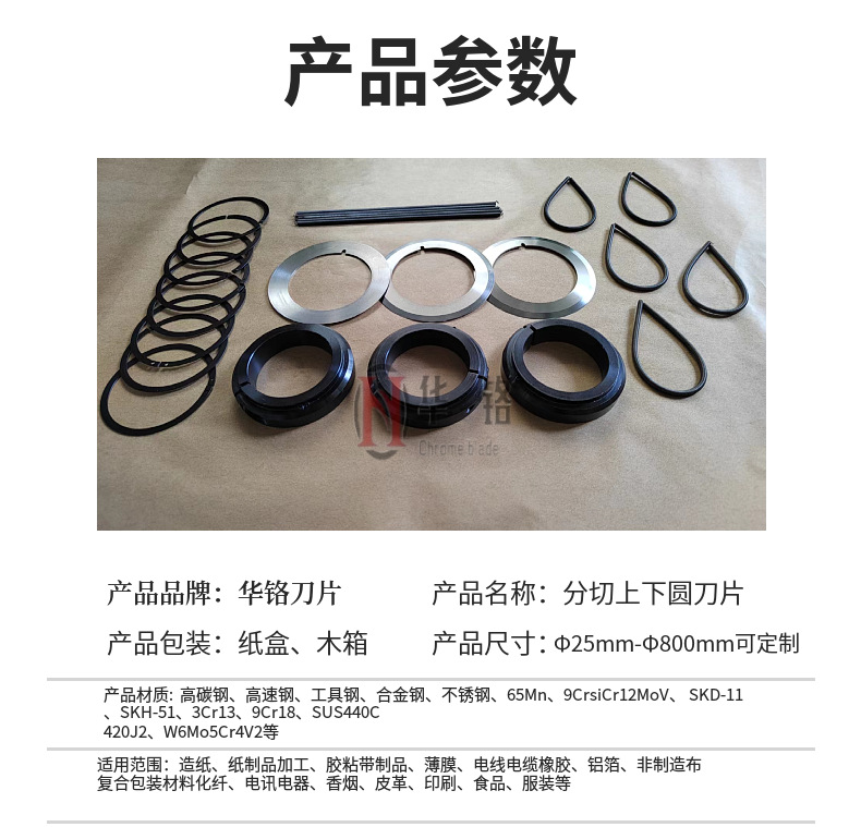 Rubber slitting machine circular blade, high-speed steel slitting upper and lower blades, film non-woven fabric slitting machine circular blade blade seat