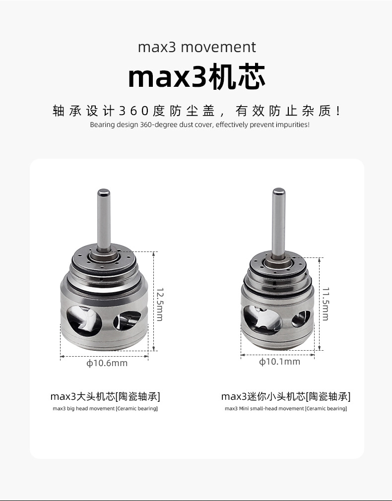 The MAX3 dental high-speed mobile phone with a large head/small head pressing mechanism ceramic bearing is compatible with the original NSK mobile phone