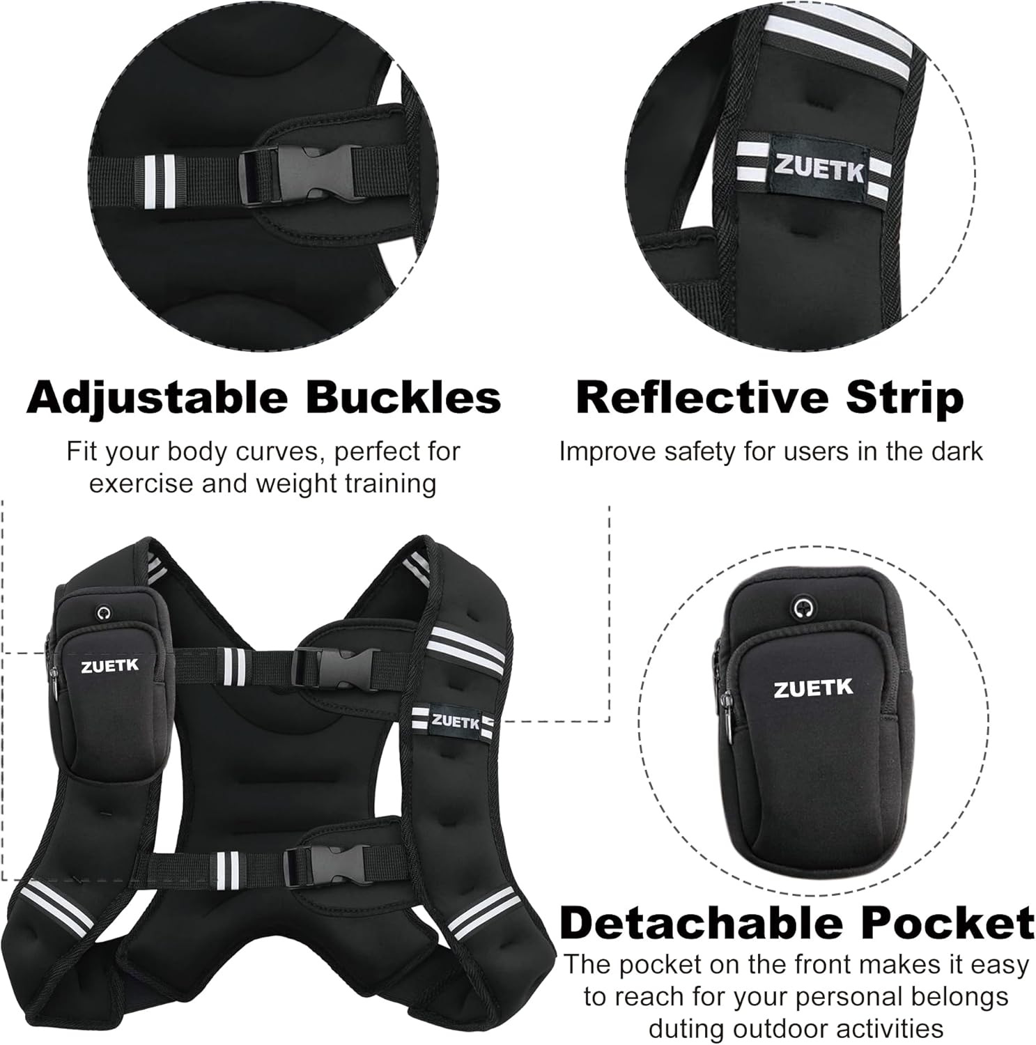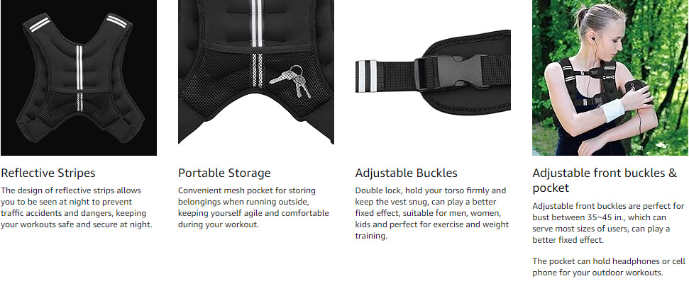 ZUETK weighted vests, men's and women's weighted vests, waistcoats, reflective striped storage bags, agile training, running, climbing stairs