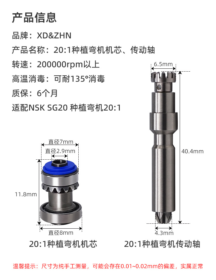 Dental material compatible NSK SG20 implant bending machine 20:1 movement drive shaft implant bending machine accessories