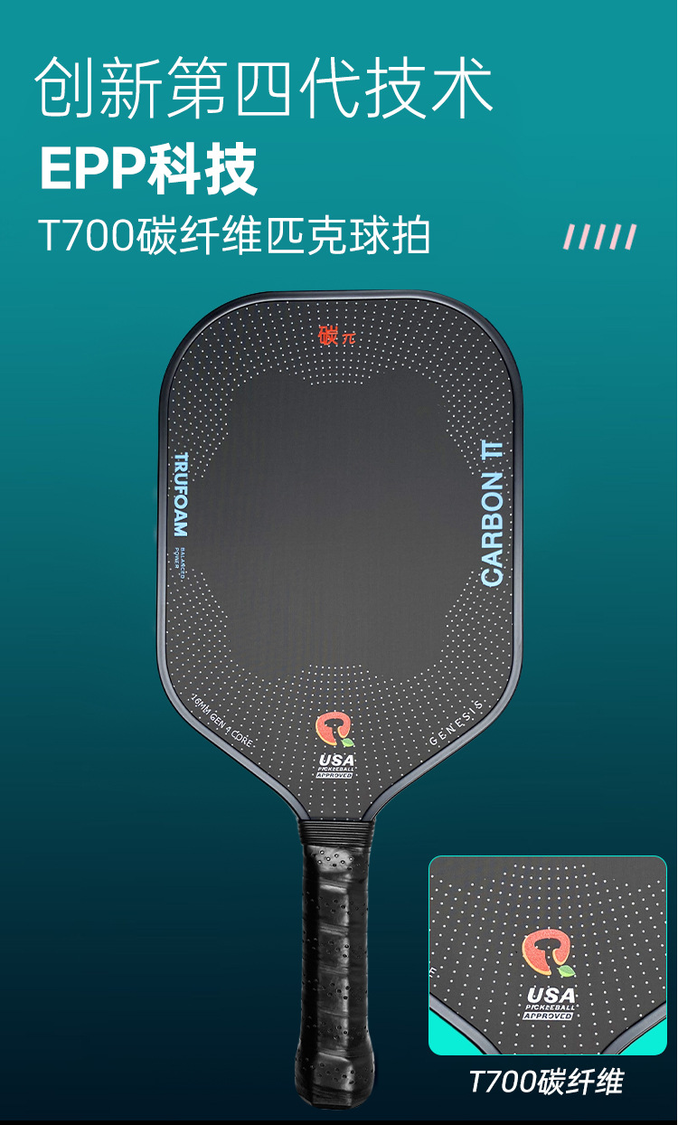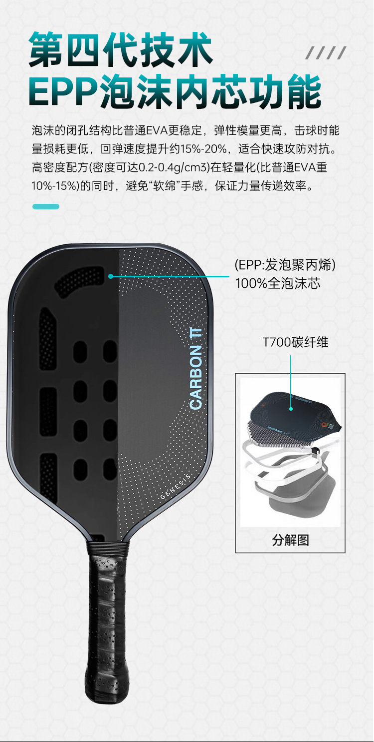 Hot-pressed 4th generation EPP core professional Peak racket carbon fiber competition grade high resilience for indoor and outdoor sports