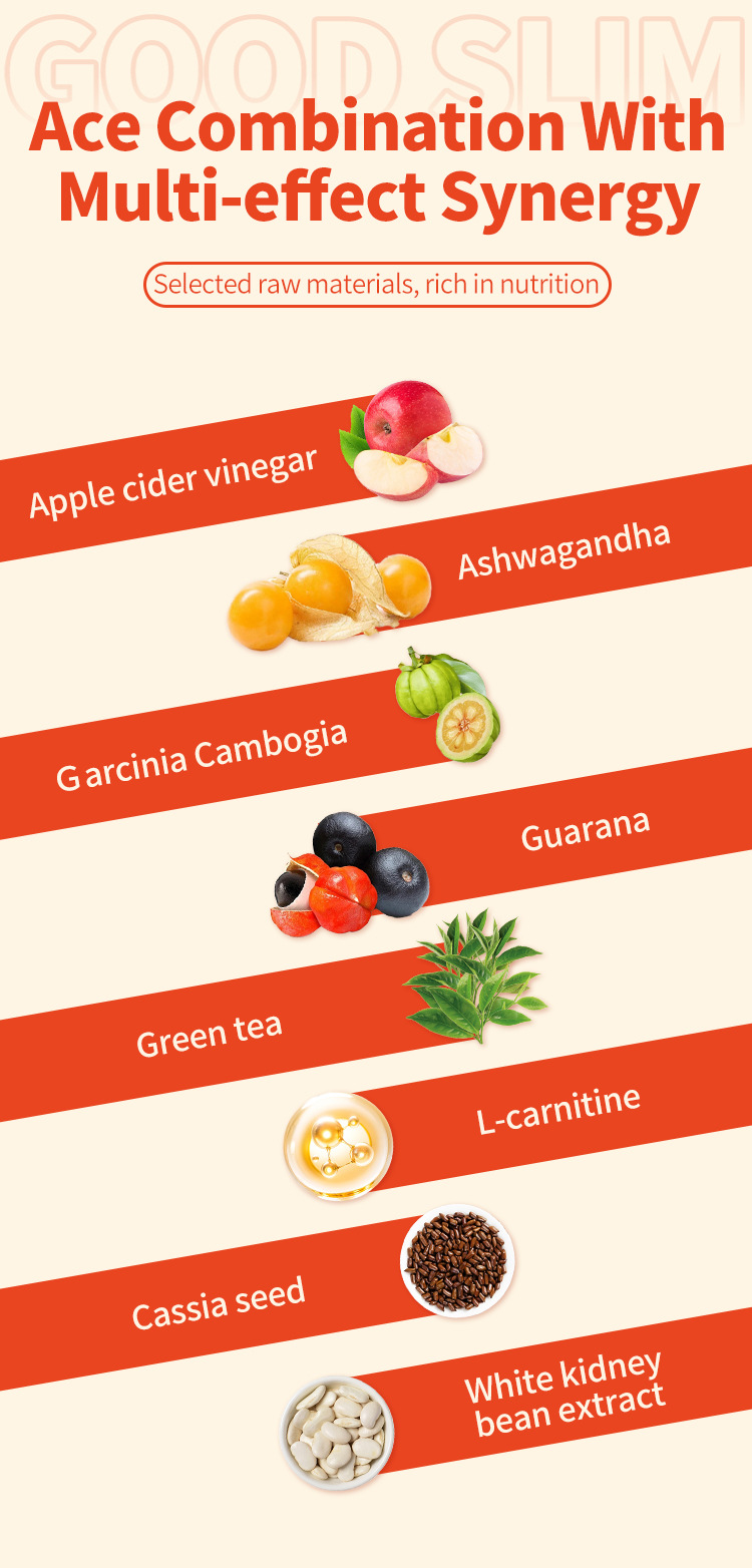 | Main raw materials | Cassia seed, concentrated FIG powder, theanine (green tea acid), white kidney bean extract, apple cider vinegar powder |