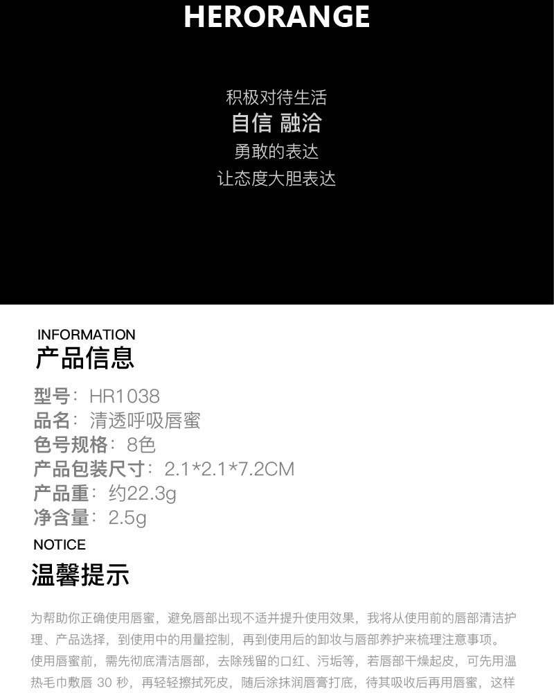 | Product Name | HERORANGE Clear Breathing Lip Gloss |