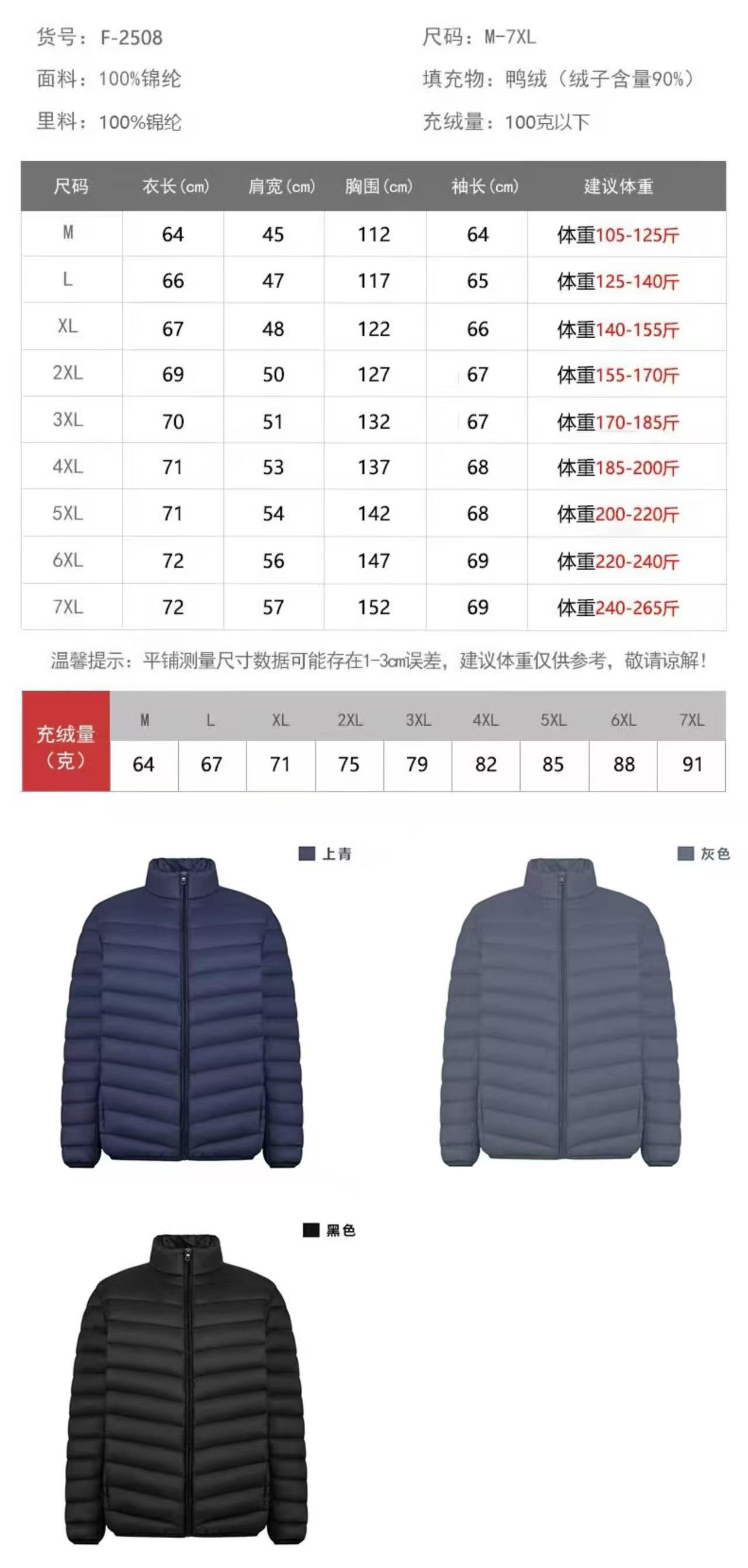 | Down filling amount | 60 |