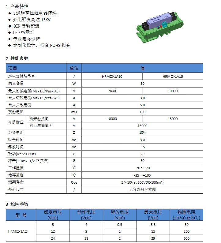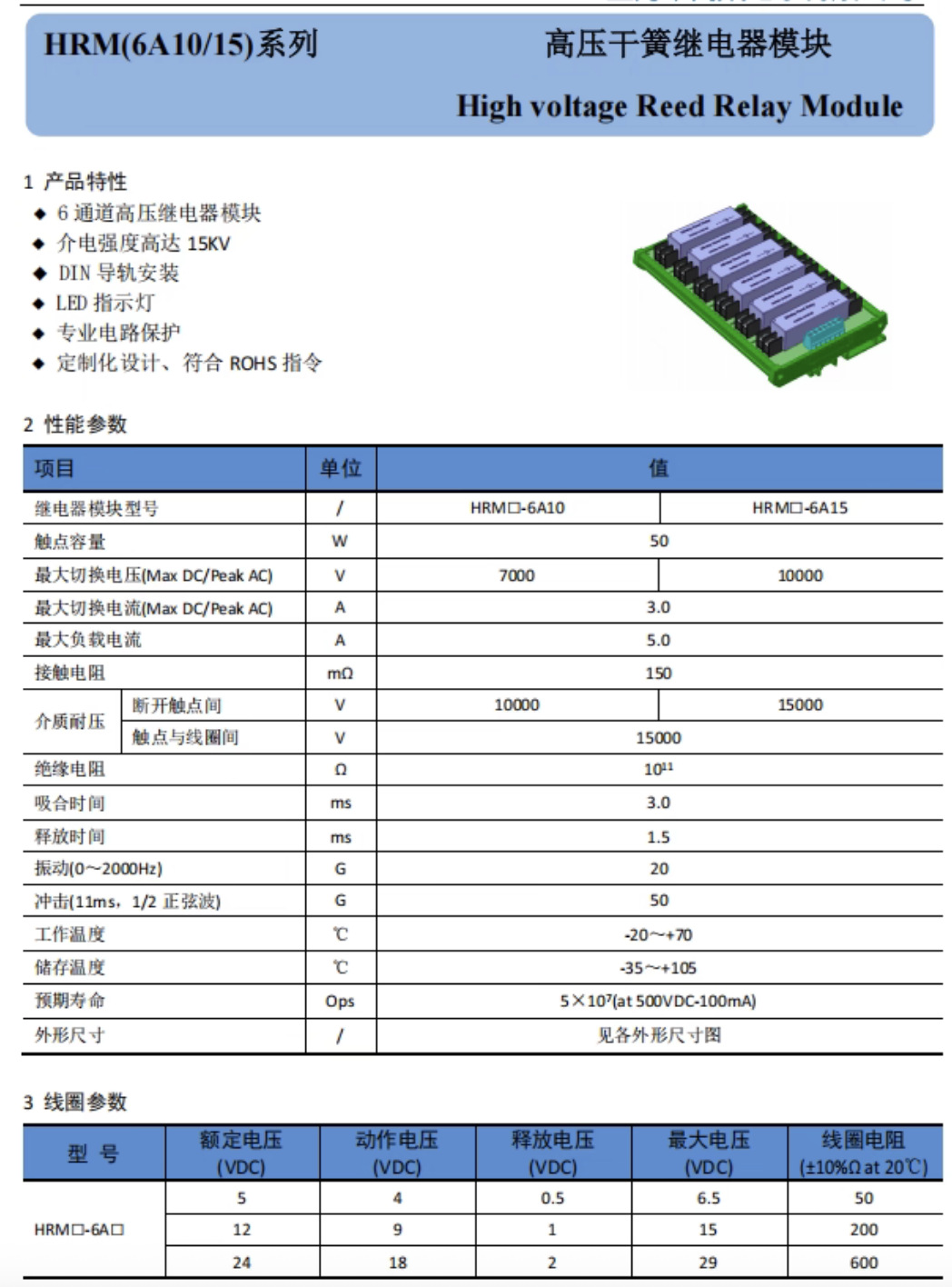 High-voltage switching module coil 24V voltage HRM24-6A withstand 15KV 6-channel reed relay module
