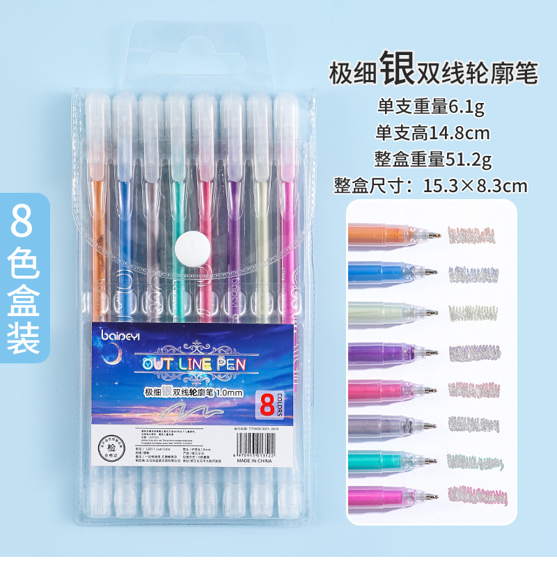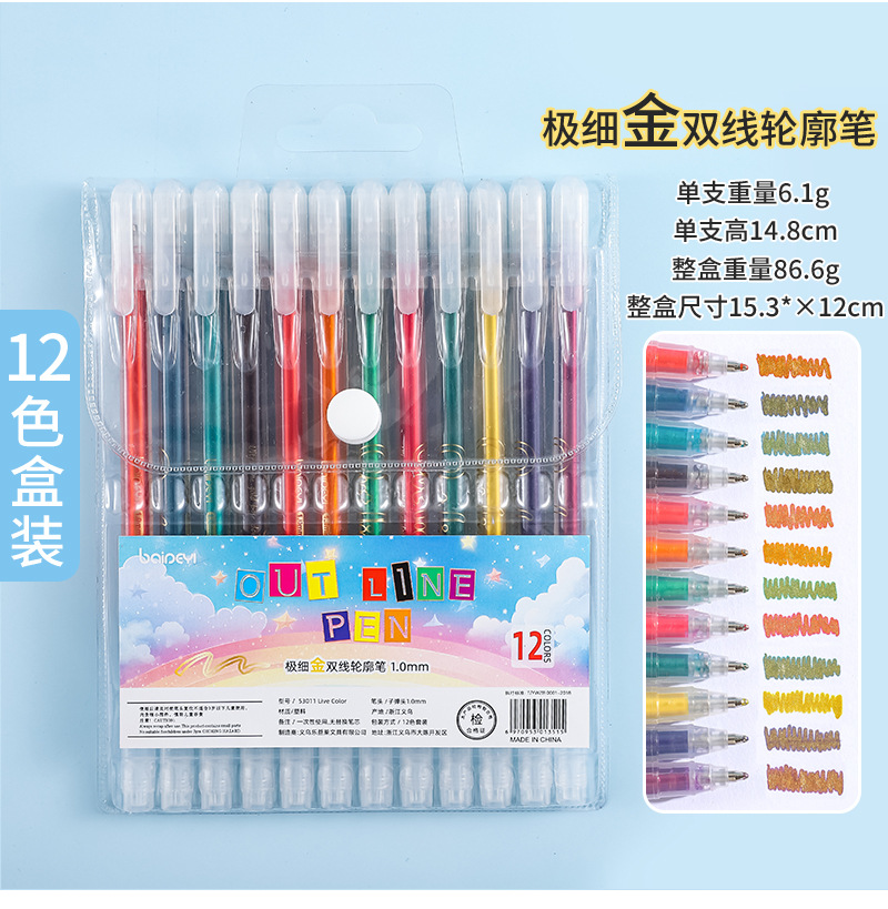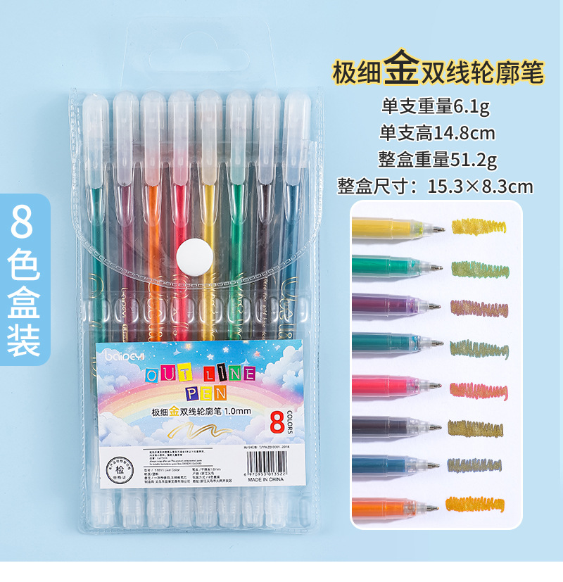 Double-line contour pens, colored double-line pens, greeting cards, handbooks, hand-written newspapers, drawing pens, marking pens, creative outline outlining pens