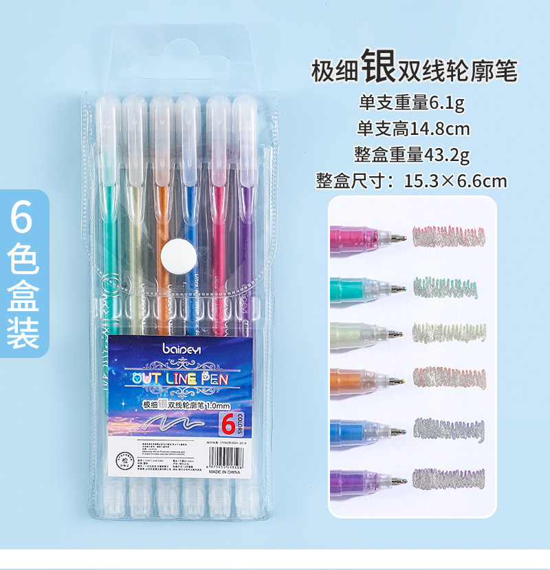 6-color gold double-line outline pen