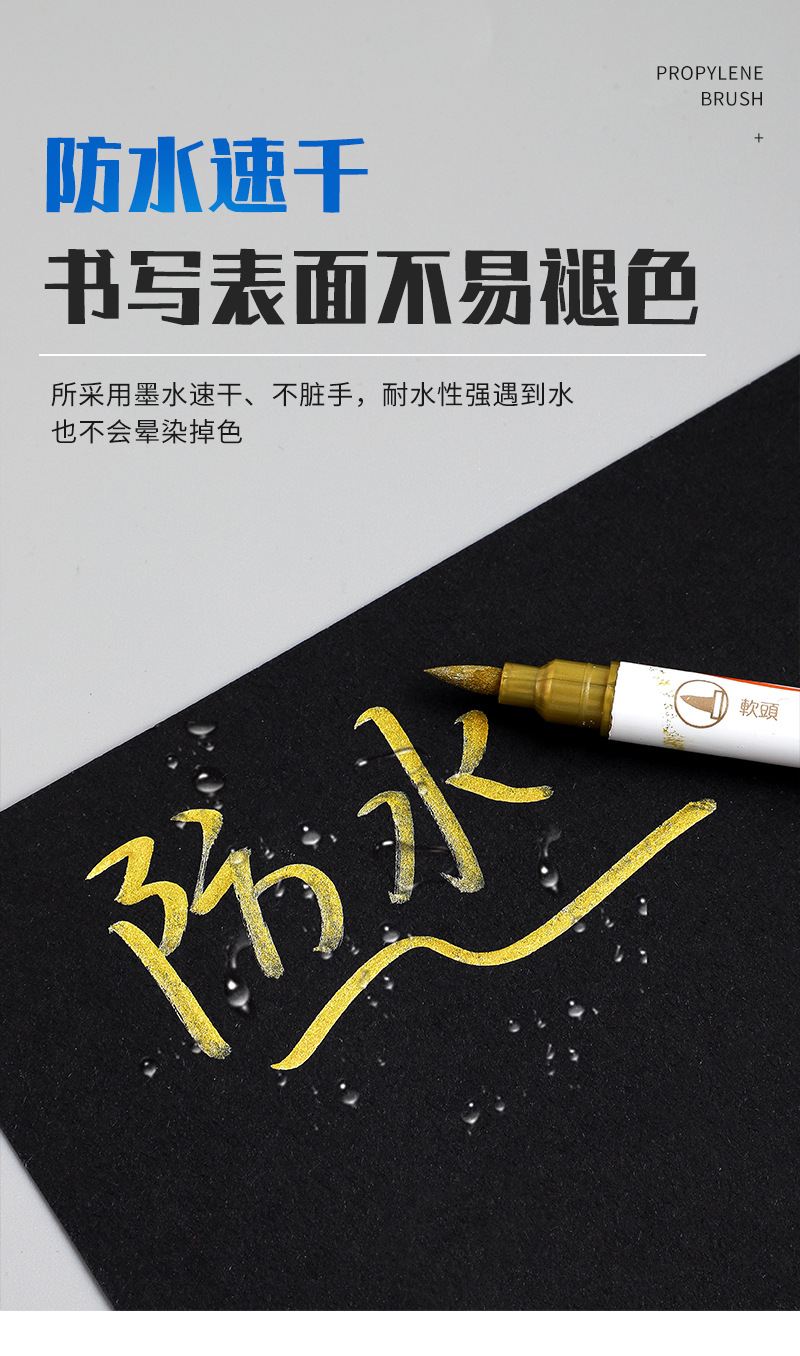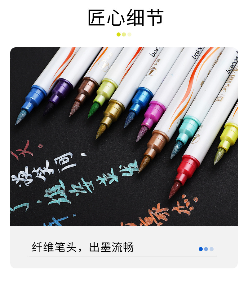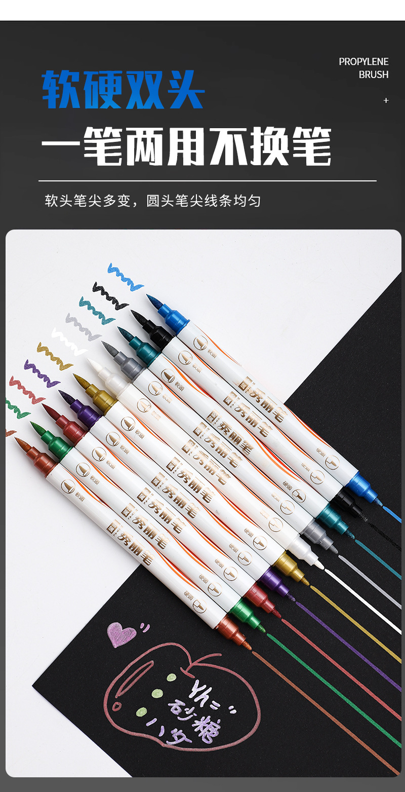Colorful double-headed soft-tipped metal paint markers, golden star signature pens, student DIY black card paper notebook pens