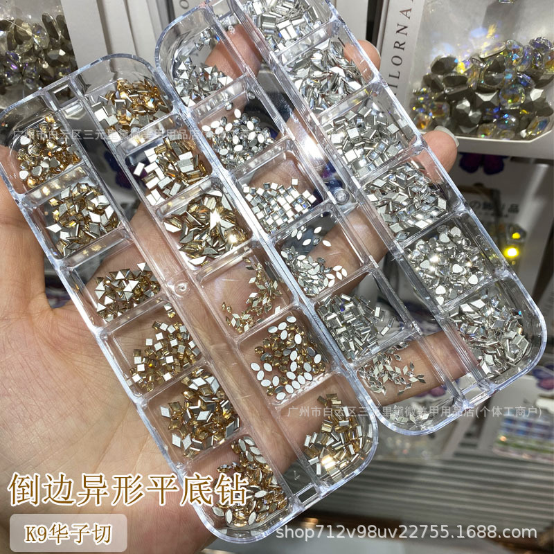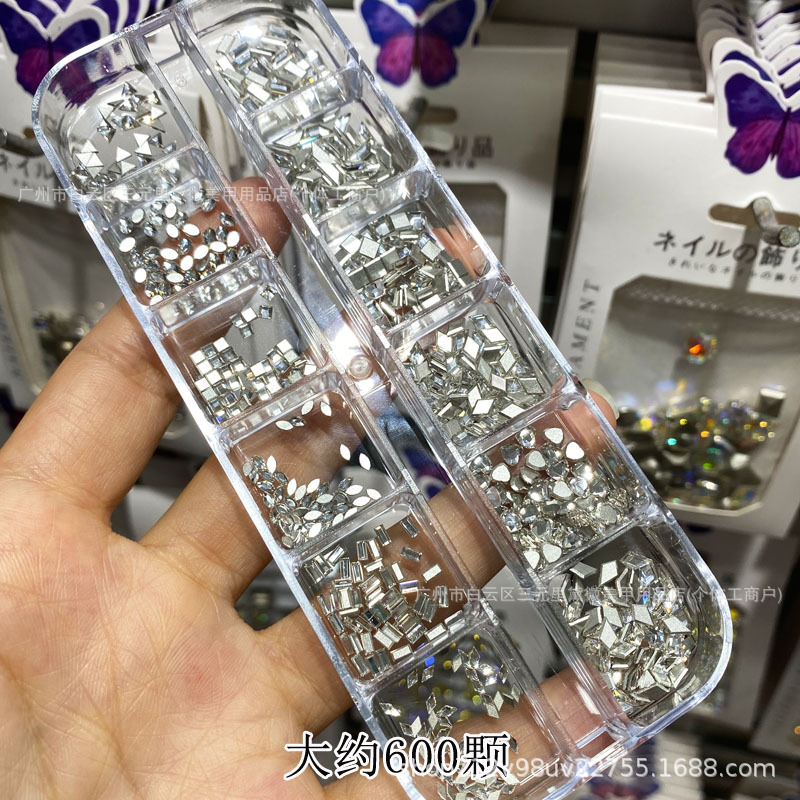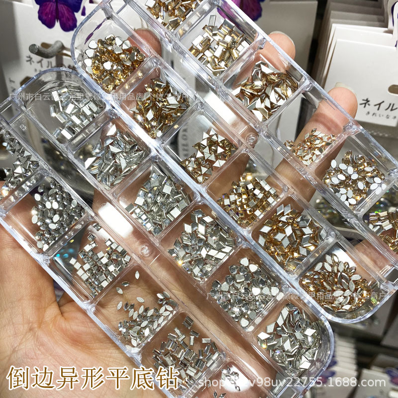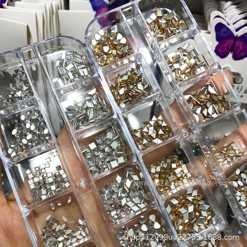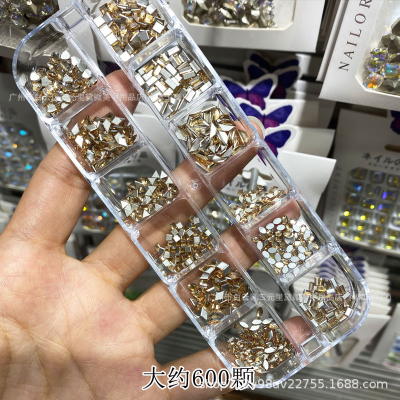 High-quality flat-bottomed zircon diamonds for nail art, mini flat-bottomed super shiny, irregular-shaped long box, 600 pink champagne diamonds