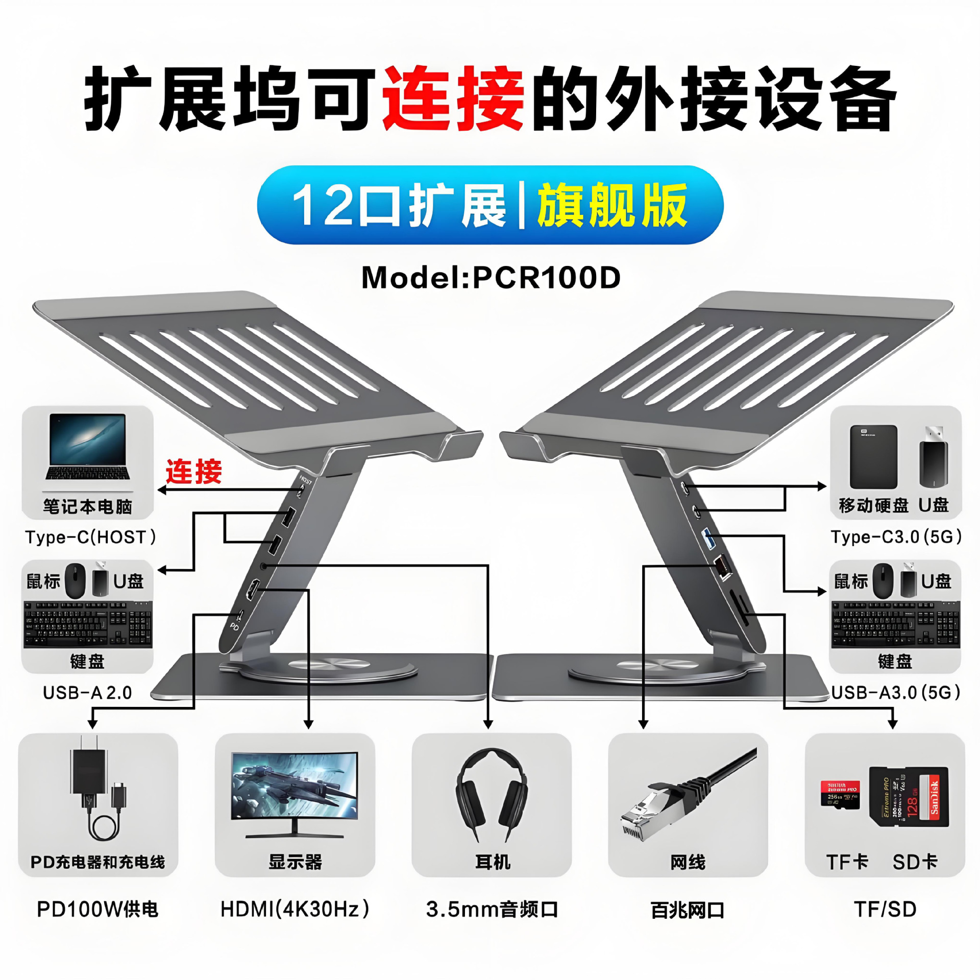 | Color | 【 10-port expansion, 4K screen projection, no network port 】PCR100C+ |