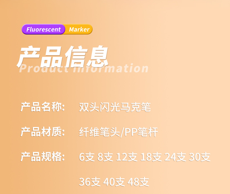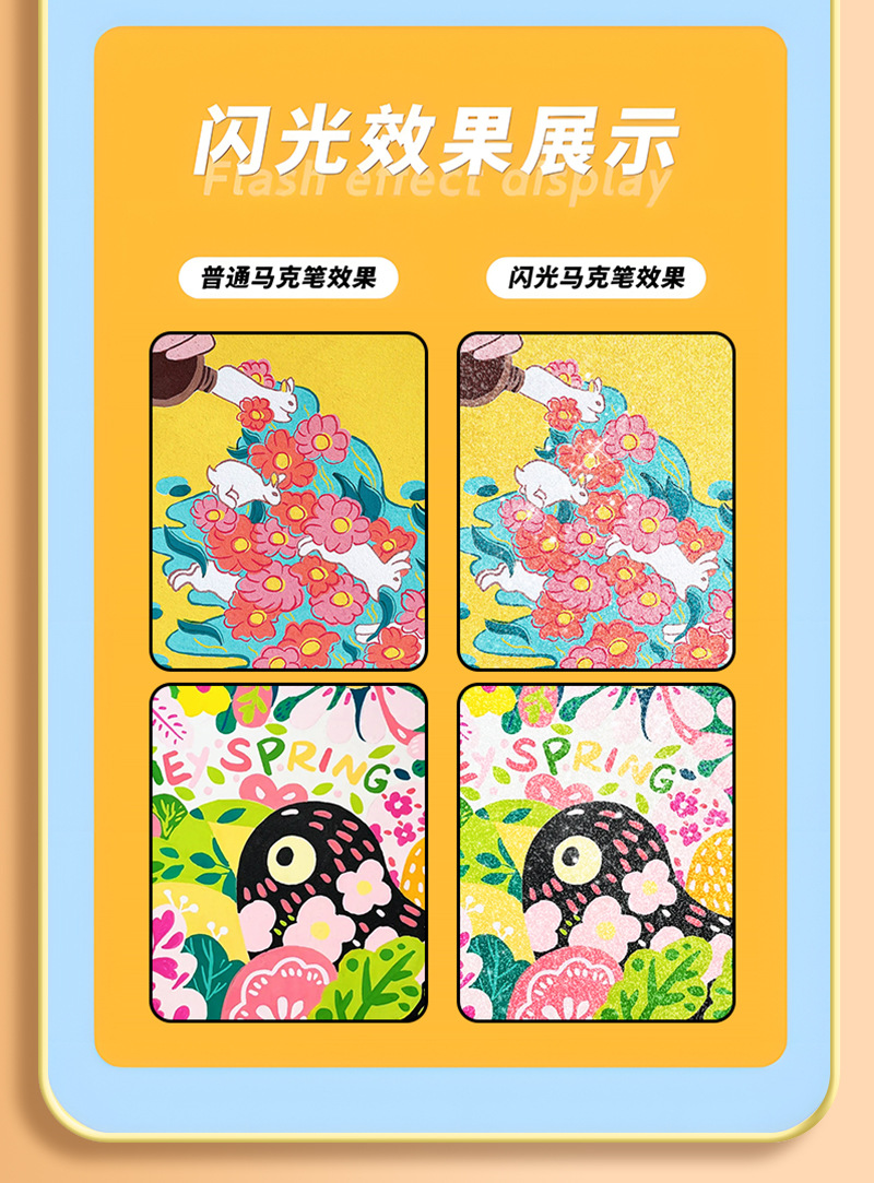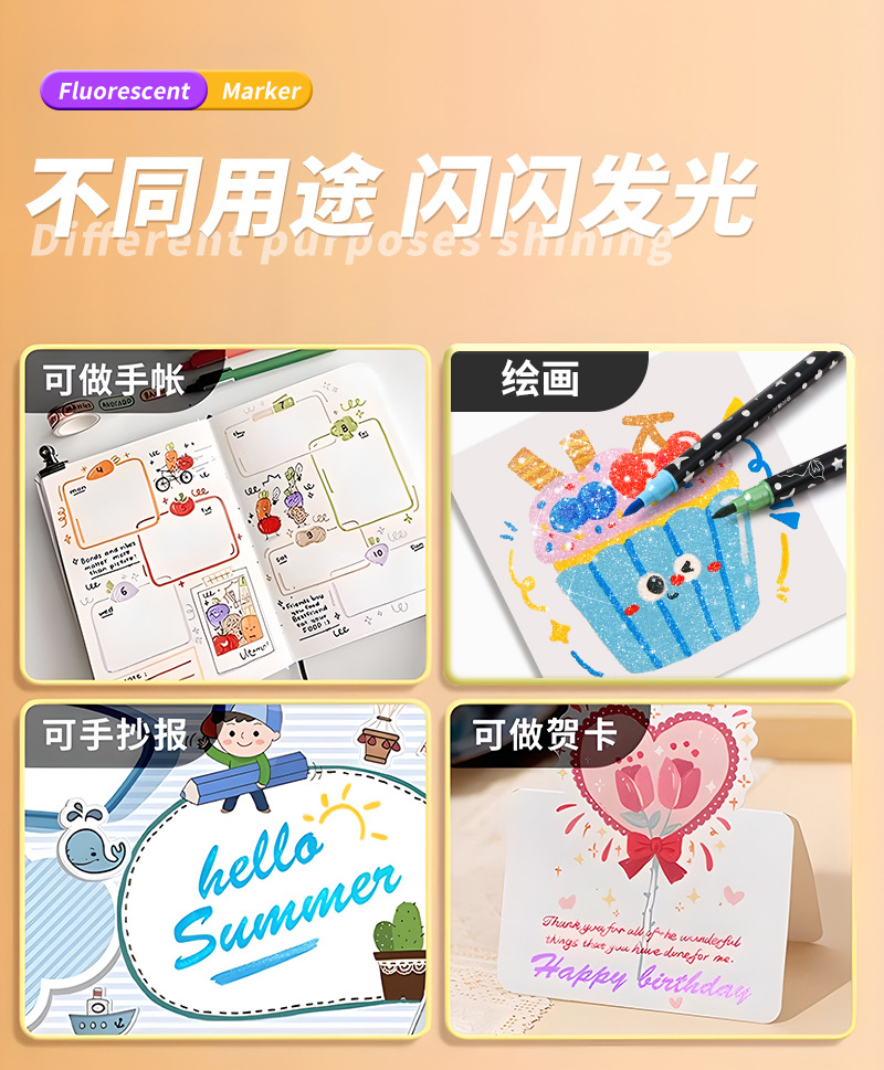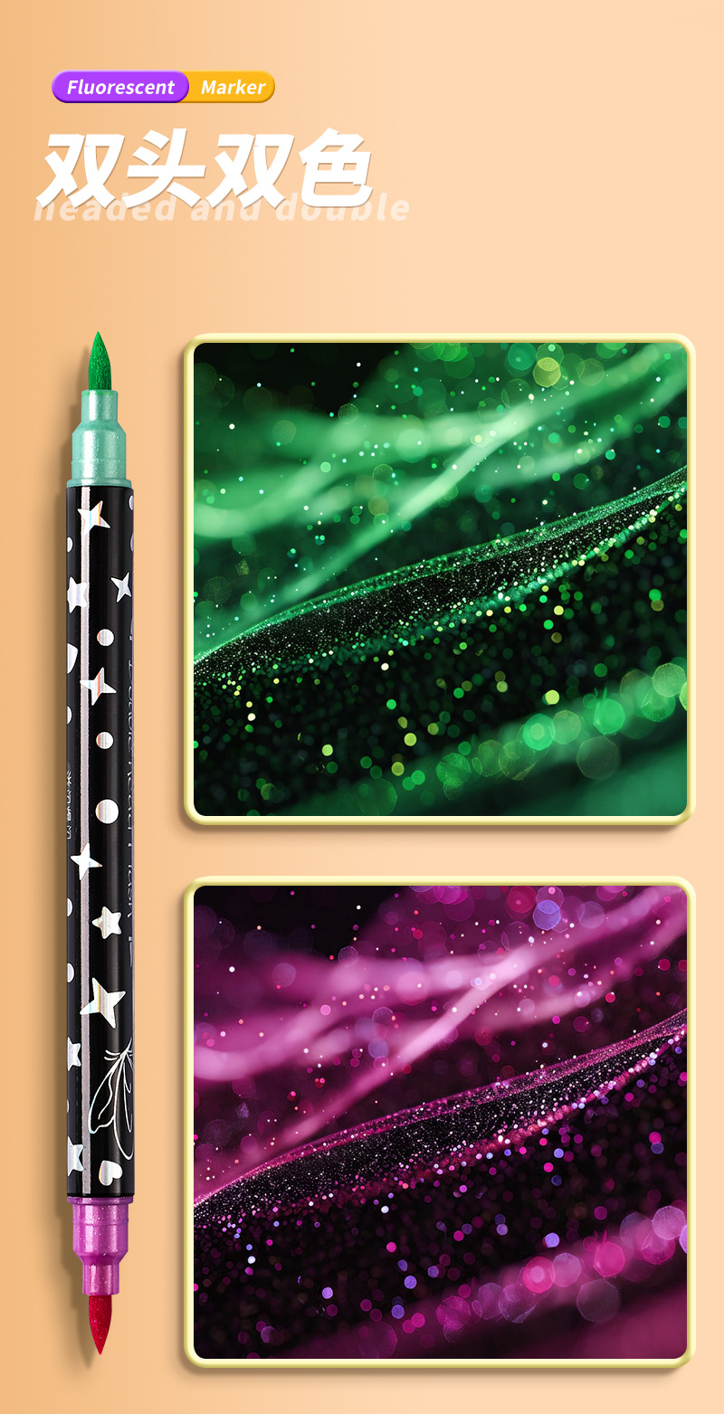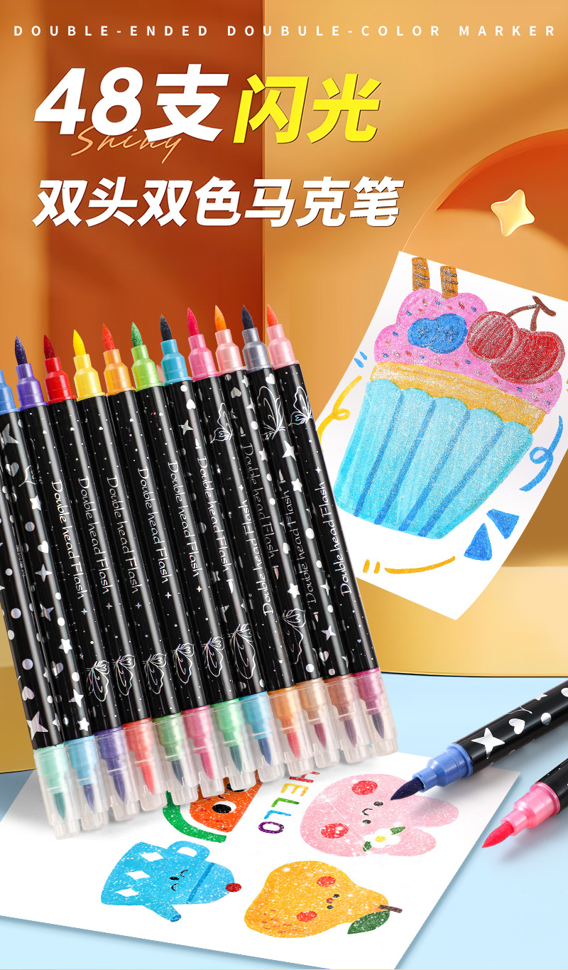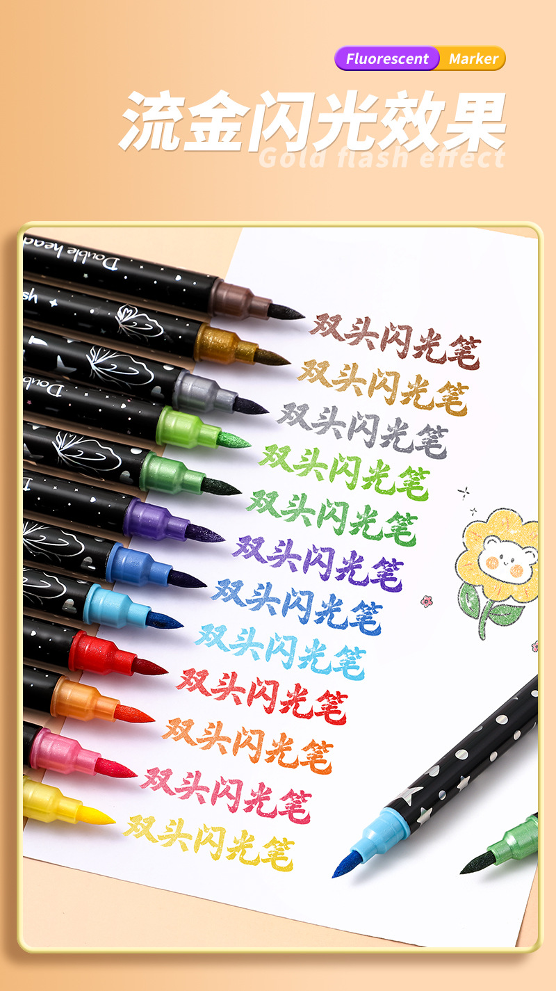 Double-headed glitter markers, pearlescent glitter markers, children's and students' colorful hand-drawn diaries, colored quicksand flash pens