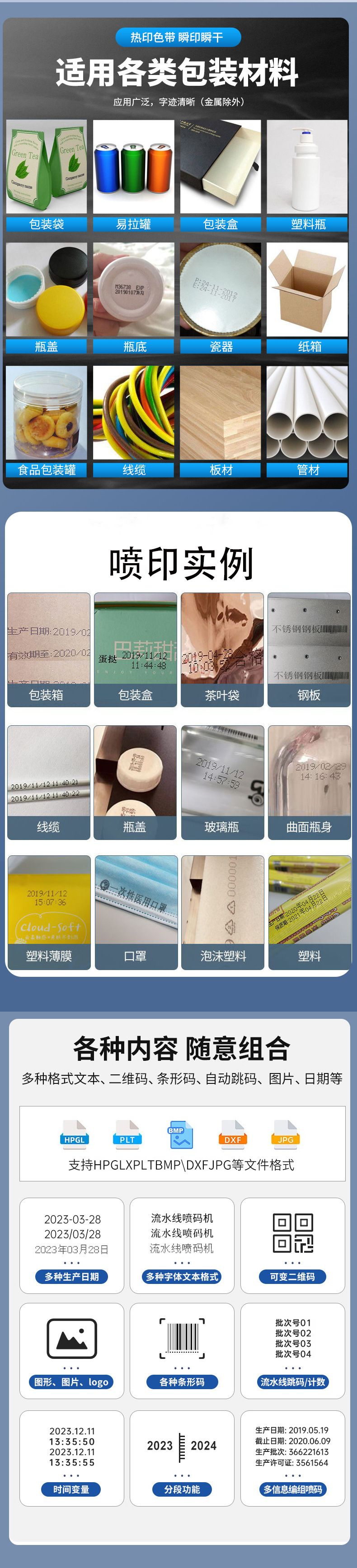 | Applicable industries | Electronic products, food packaging, pharmaceuticals and medical care, alcoholic beverages and soft drinks, hardware accessories, auto parts |