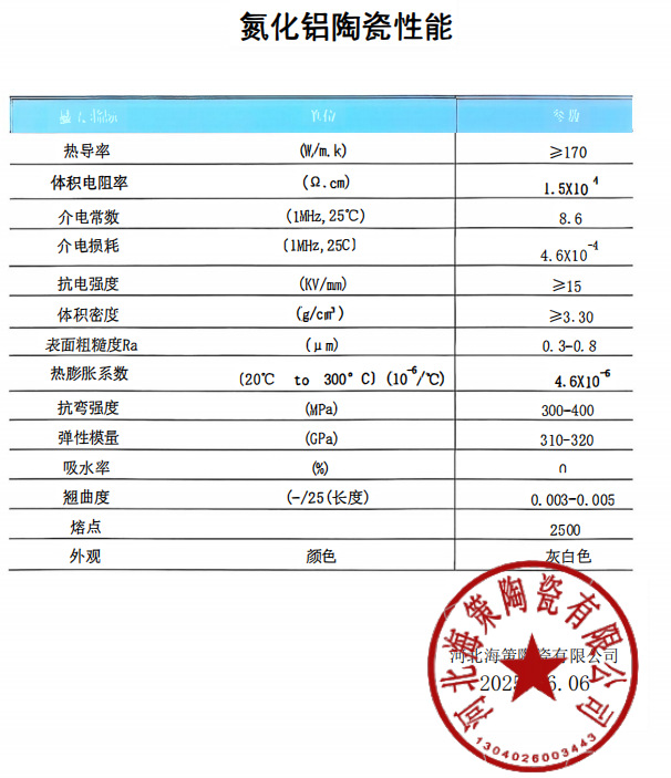 | Thermal conductivity | Greater than or equal to 170(w.m. k) |