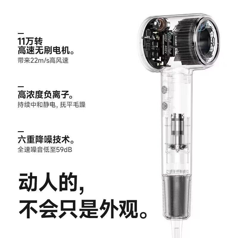 The 2024 New Hot Selling High-Speed Hairdryer is equipped with a brushless motor, which means it delivers powerful airflow while consuming less energy. With its 1600W rated power, you can achieve the desired results in no time!