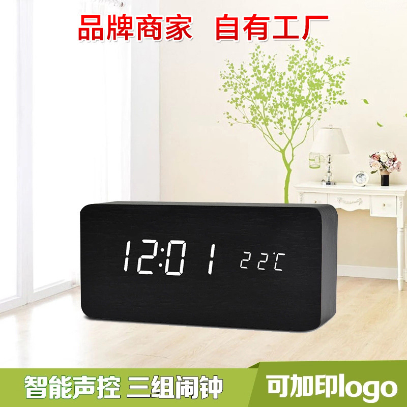 Simple LED electronic clock for Merchant Festival, multi-functional desktop wooden alarm clock, voice-controlled table clock for students, children and lazy people