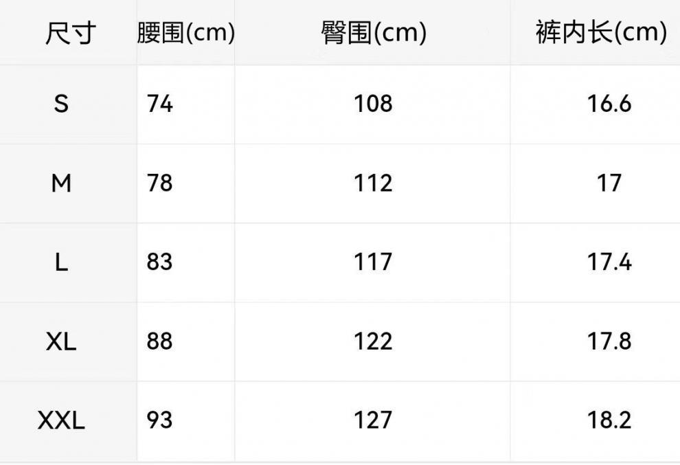 | Length of trousers | Shorts |