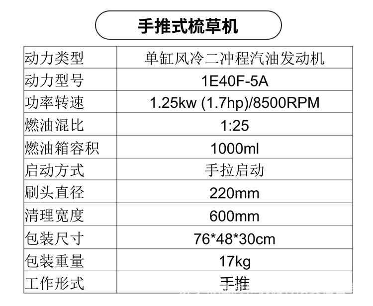 | Product specification | Hand-pushed four-stroke upgraded version |