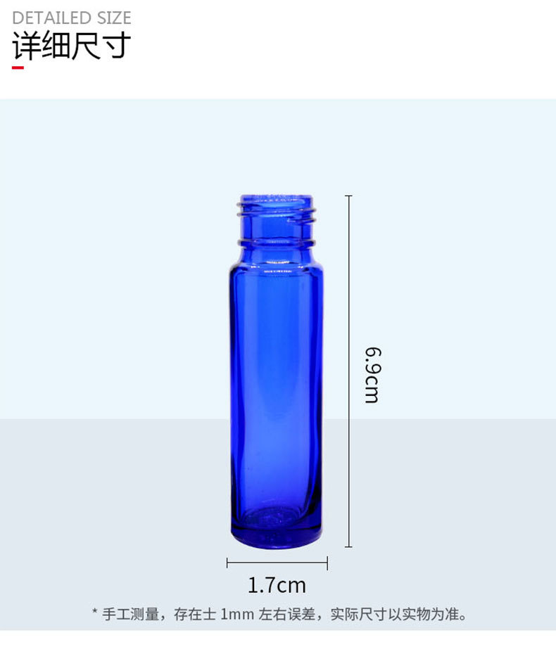 Specification and model | 10ml rolling bead bottle + plastic black cap + steel beads; blue |