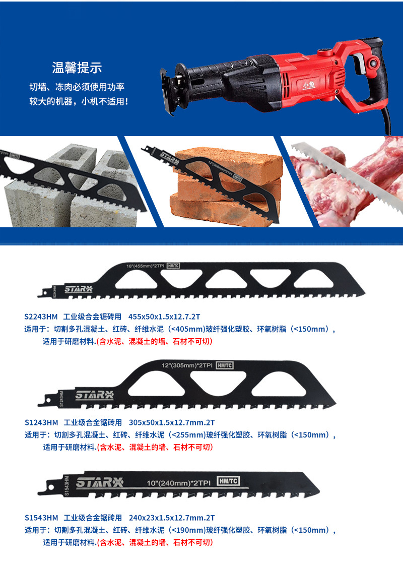 Alloy reciprocating saw blade 455mm, saw for cement bricks and red bricks, extended saber saw blade, saw blade for cutting walls, bones and frozen meat