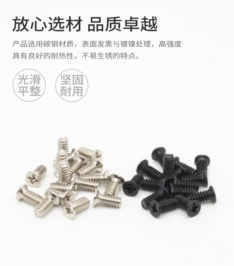 KBM5 desktop computer case fan screws, countersunk head, flat head and flat tail self-tapping screws, nickel-plated black